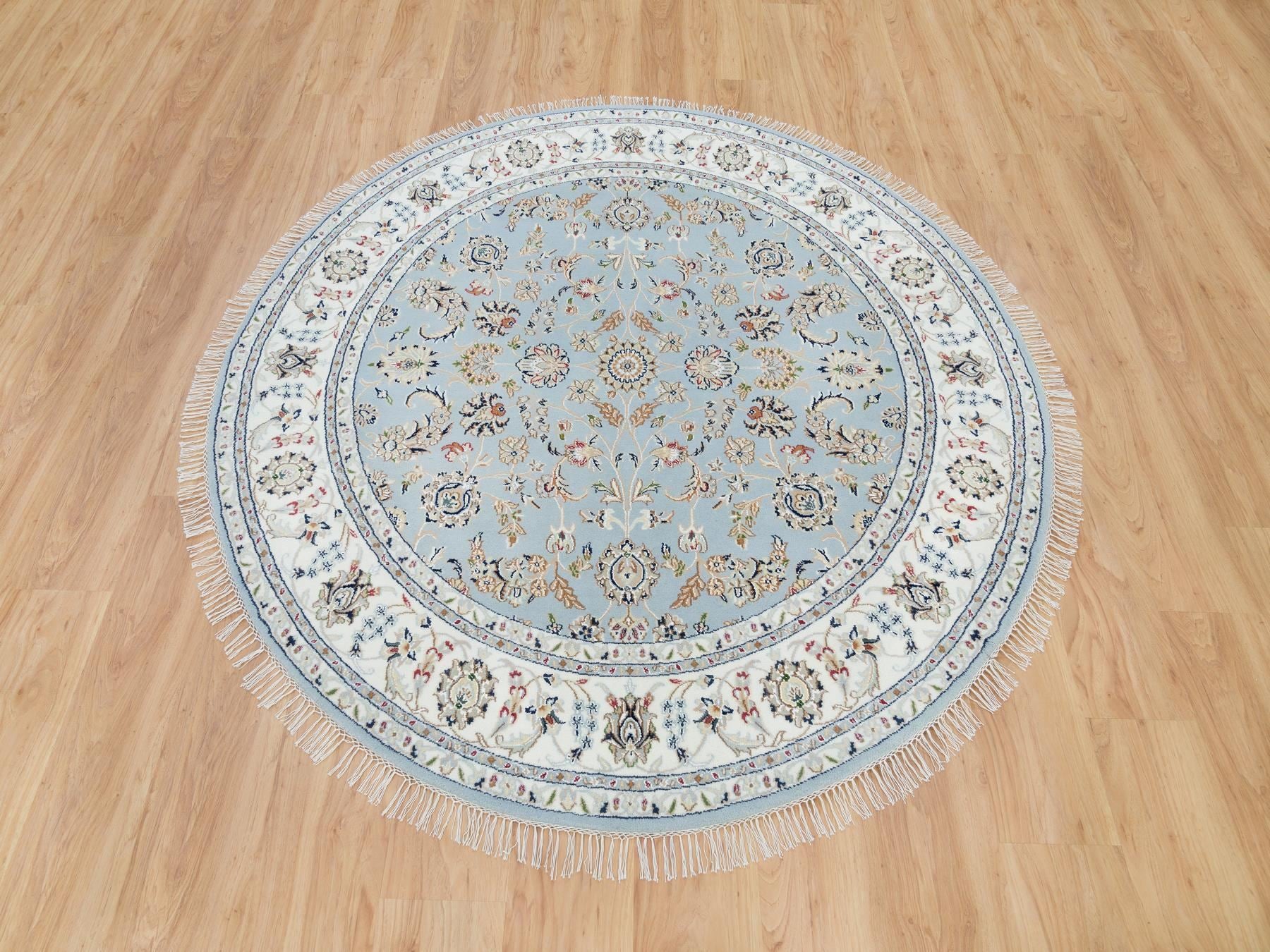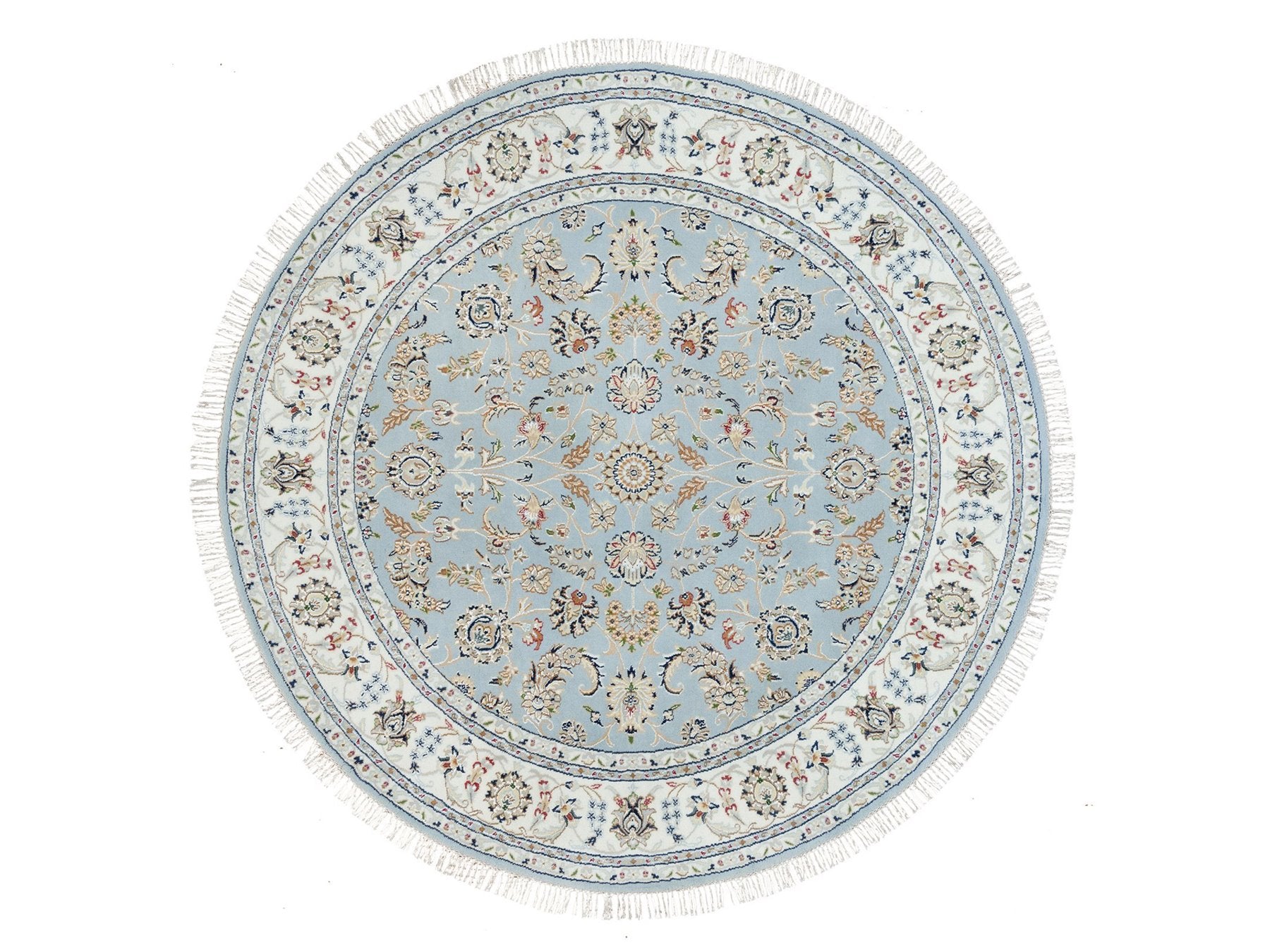 6'0" x 6'0" New Hand Knotted Blue Wool Round Oriental Rug - MOA10290017