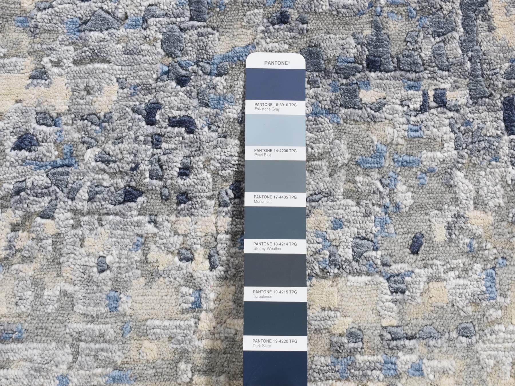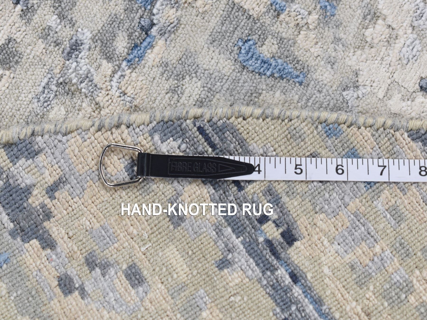 6'0" x 6'0" New Hand Knotted Blue Wool & Silk Round Oriental Rug - MOA10287718