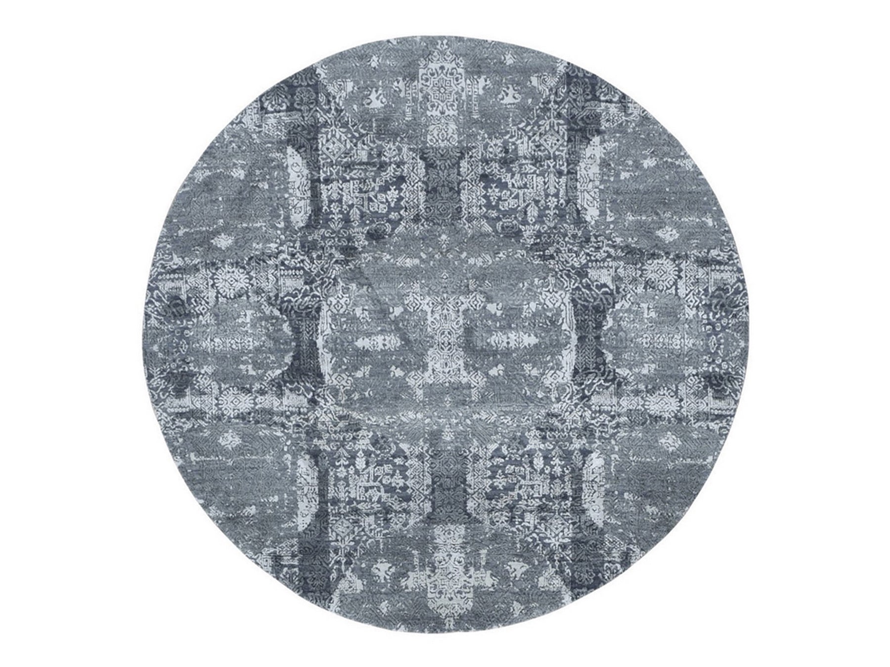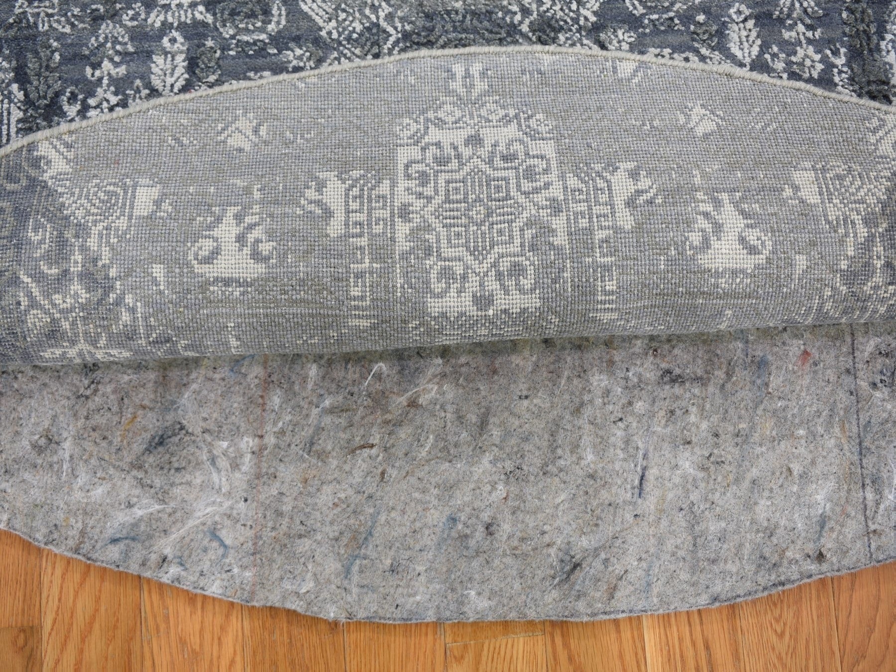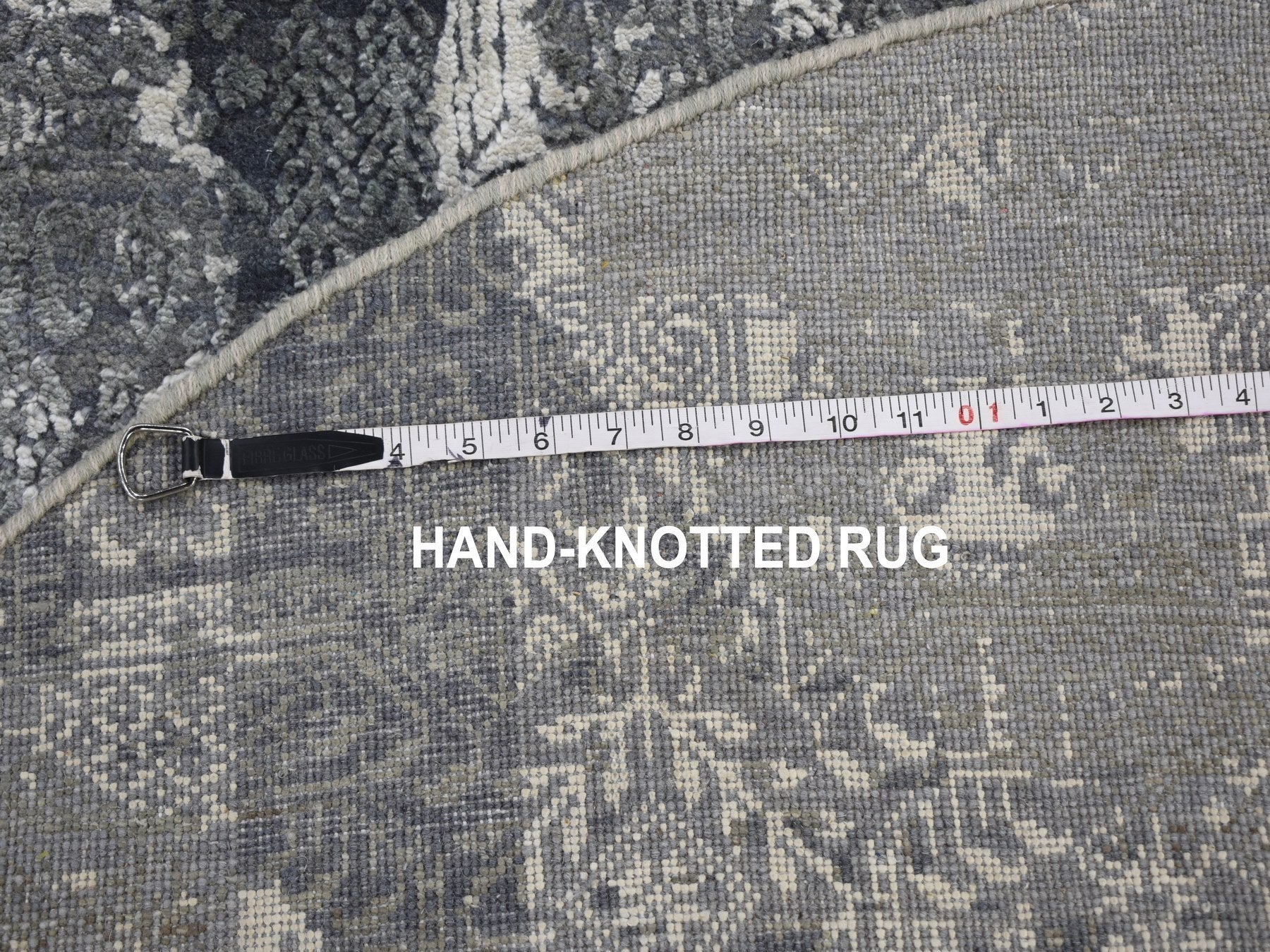 6'1" x 6'1" New Hand Knotted Grey Wool & Silk Round Oriental Rug - MOA10266778