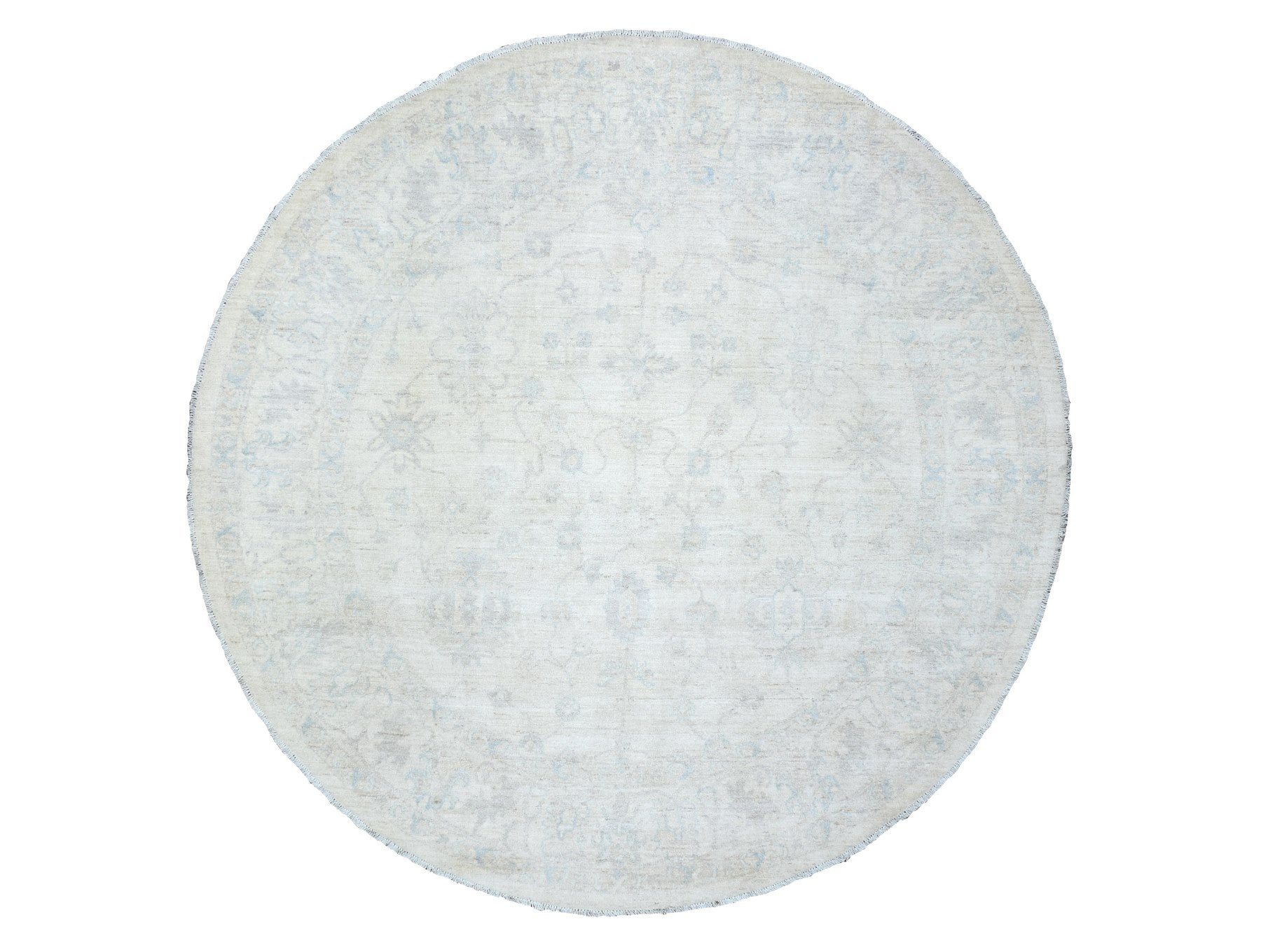 7'10" x 7'8" New Hand Knotted Ivory Wool Round Oriental Rug - MOA10272881