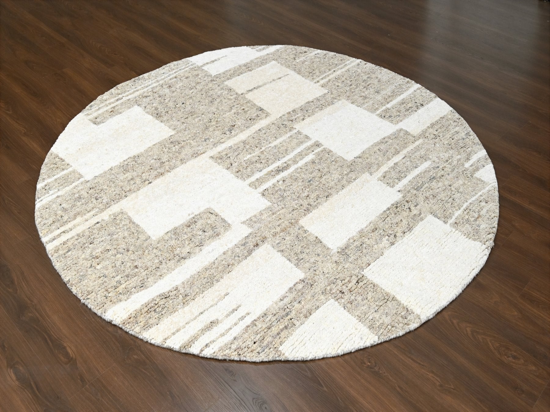 7'10" x 8'3" New Hand Knotted Brown Wool Round Oriental Rug - MOA10284623