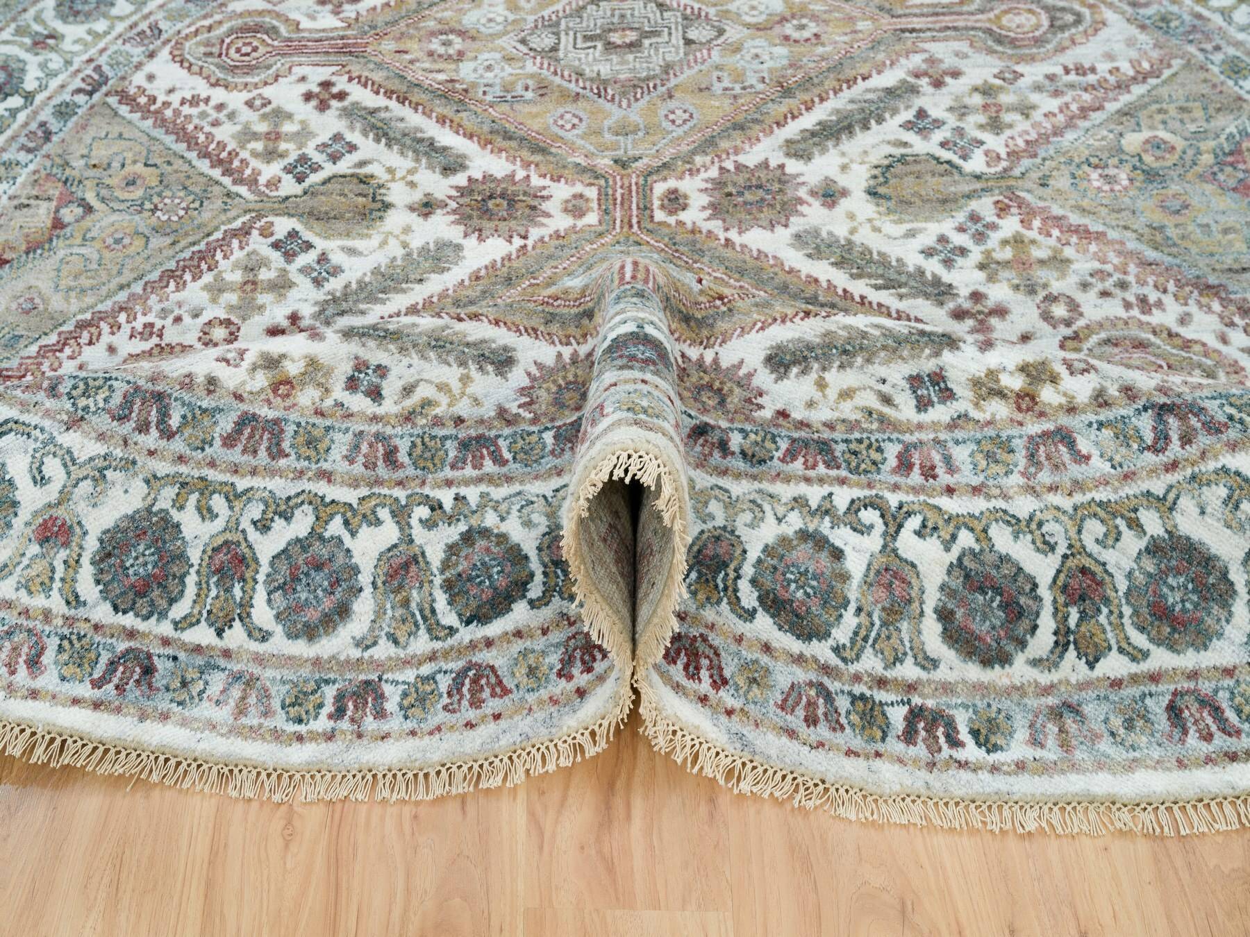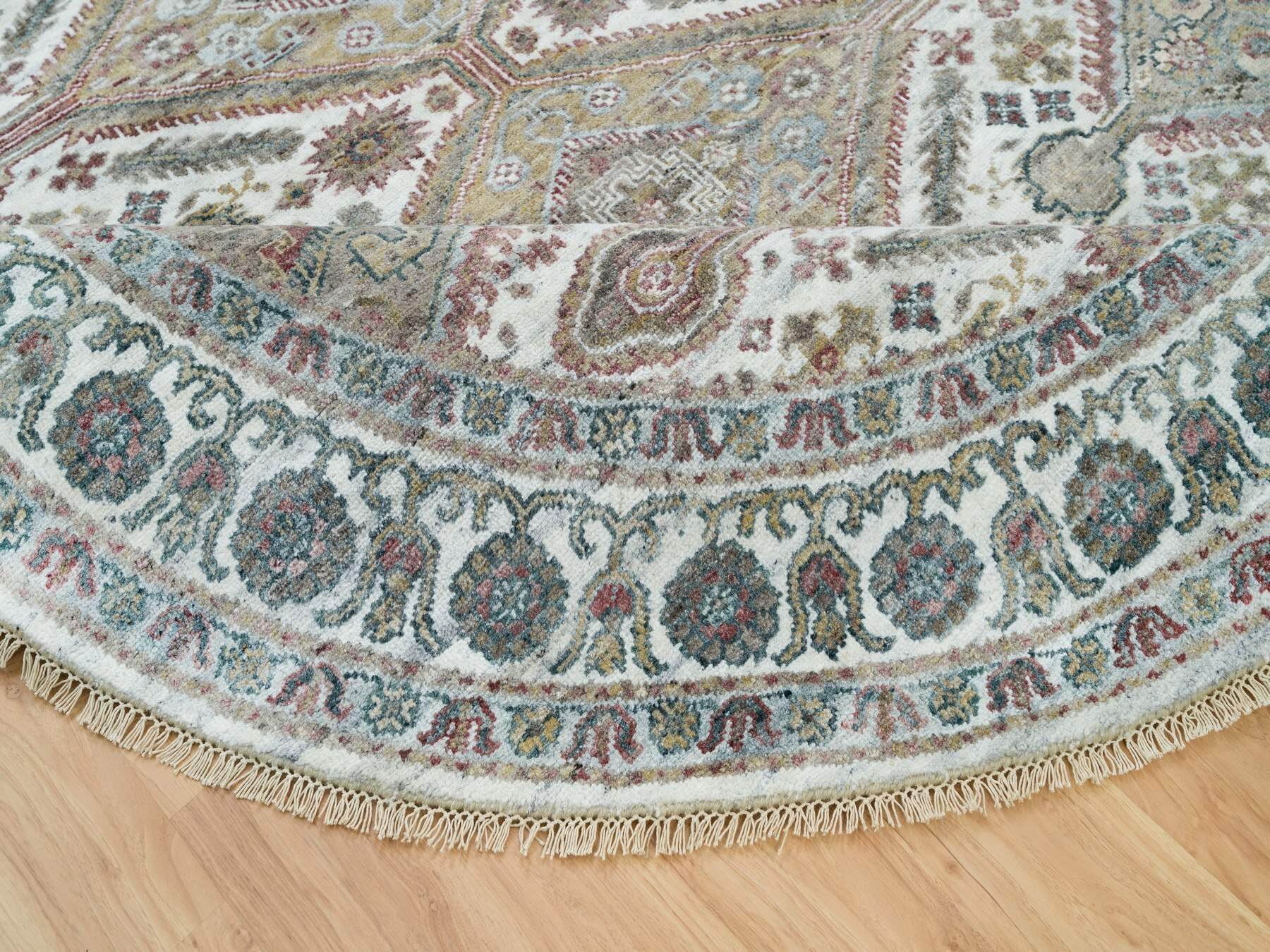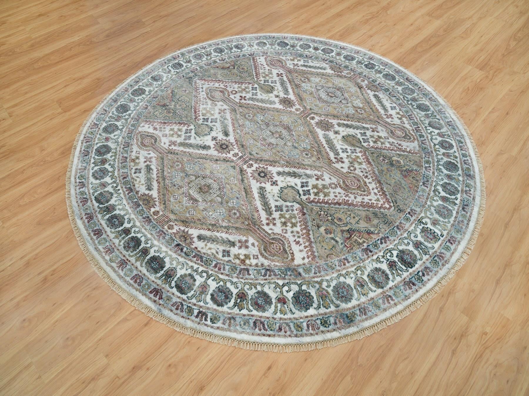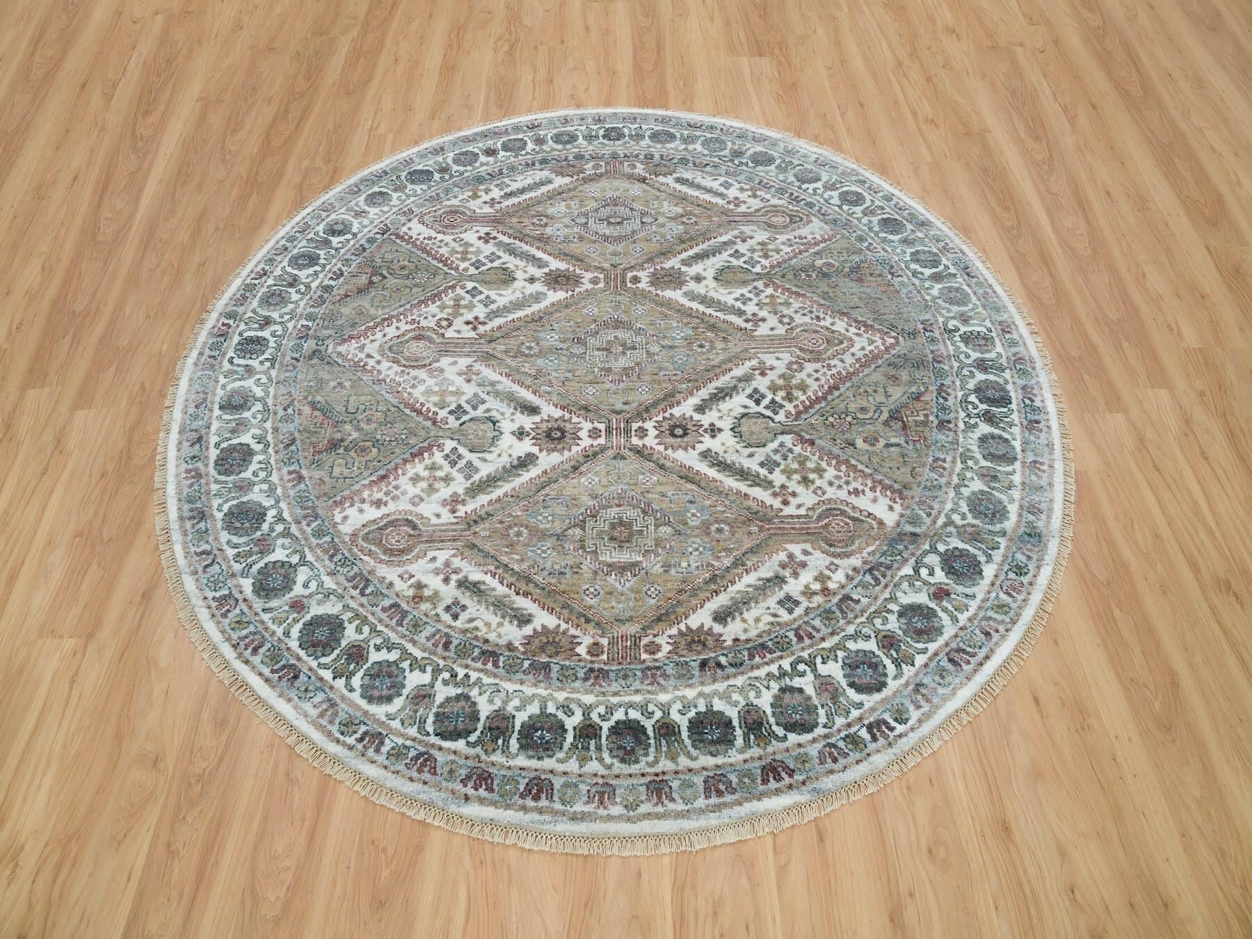7'11" x 7'11" New Hand Knotted Ivory Wool Round Oriental Rug - MOA10265859