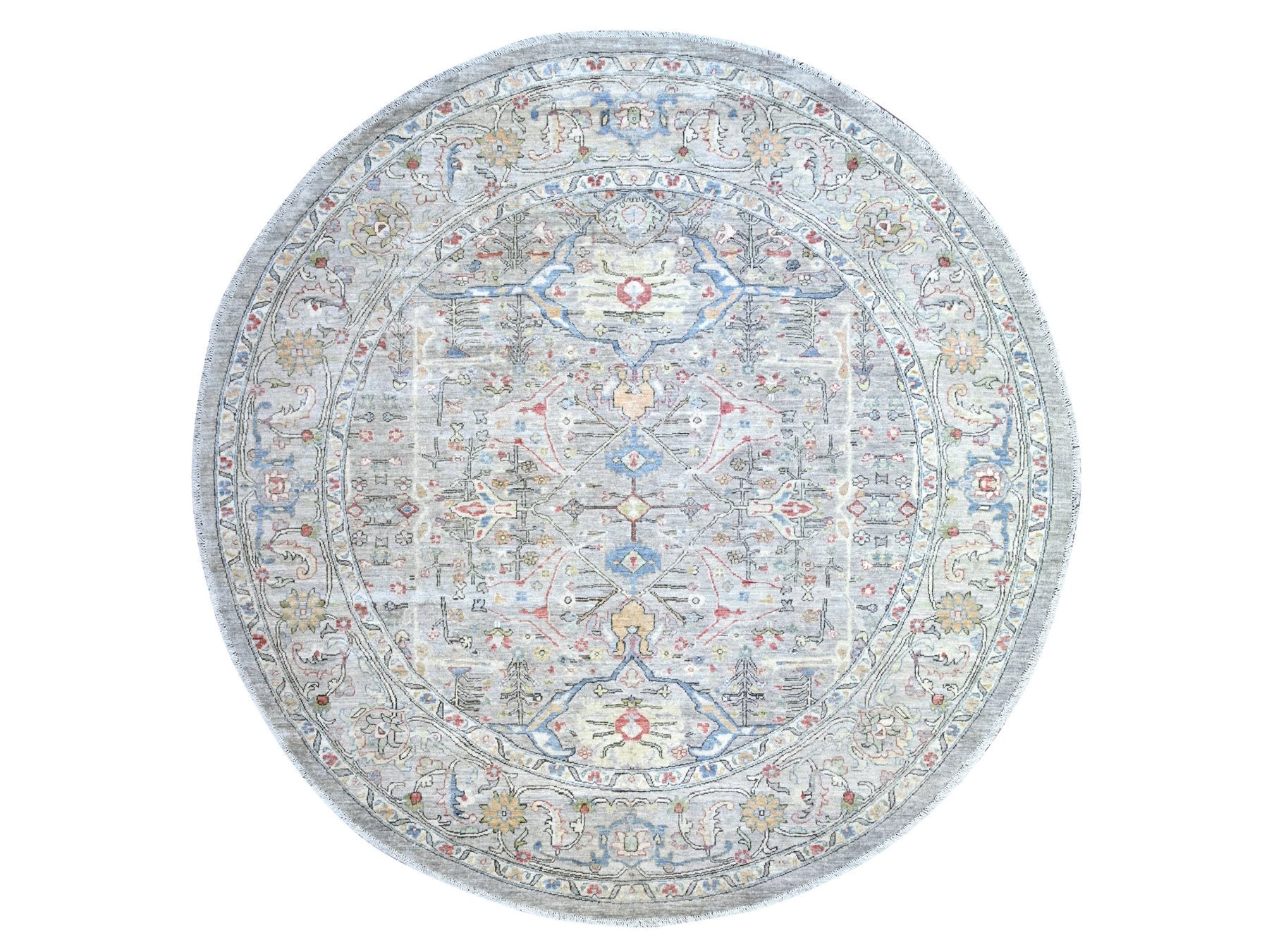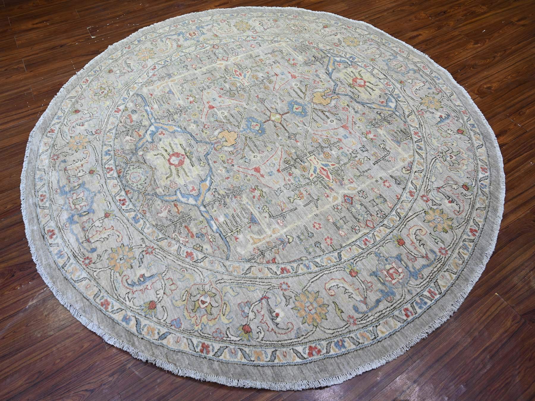 8'0" x 8'0" New Hand Knotted Grey Wool Round Oriental Rug - MOA10274820
