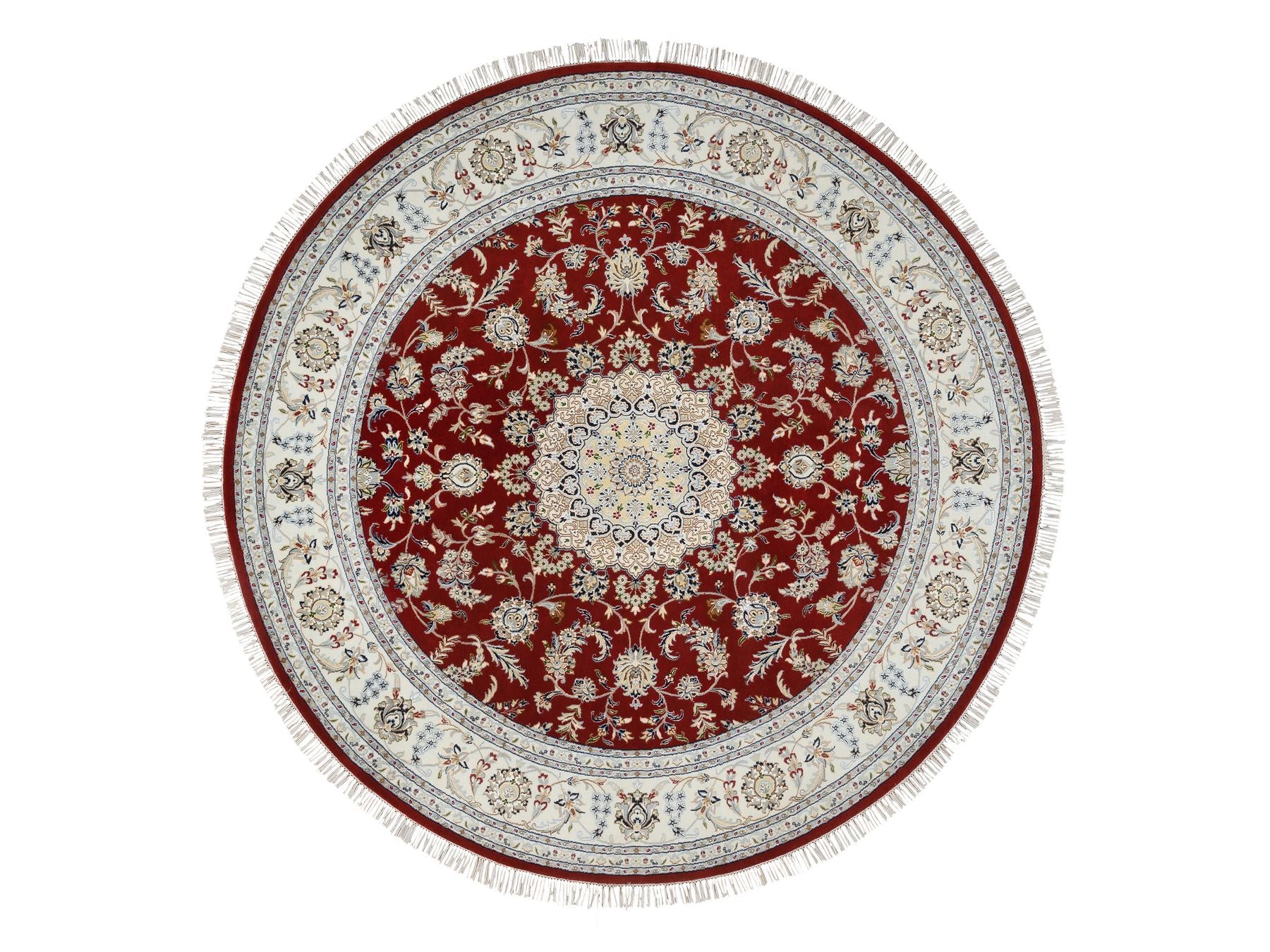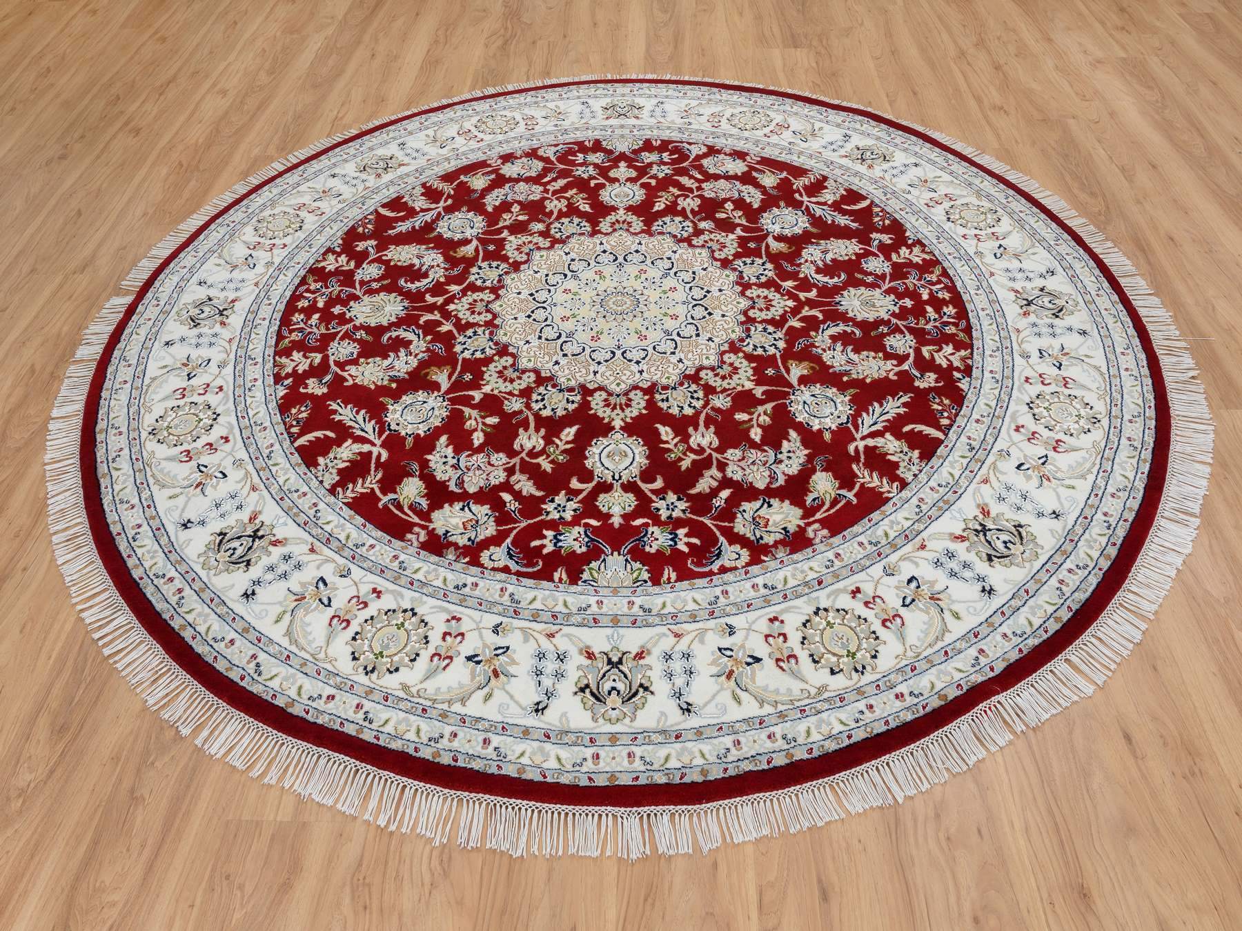 8'0" x 8'0" New Hand Knotted Red Wool Round Oriental Rug - MOA10264719