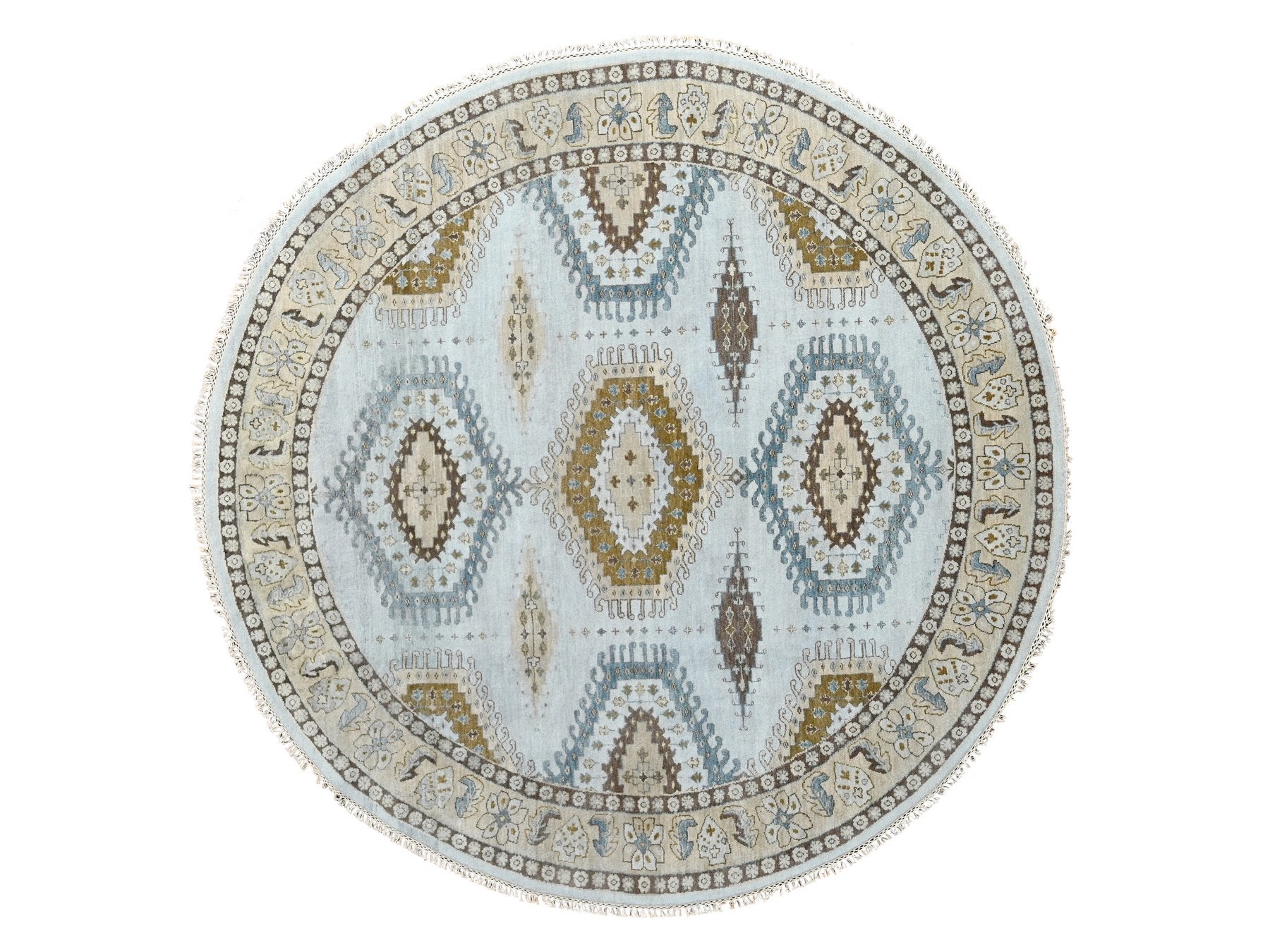 8'1" x 8'1" New Hand Knotted Grey Wool Round Oriental Rug - MOA10284921