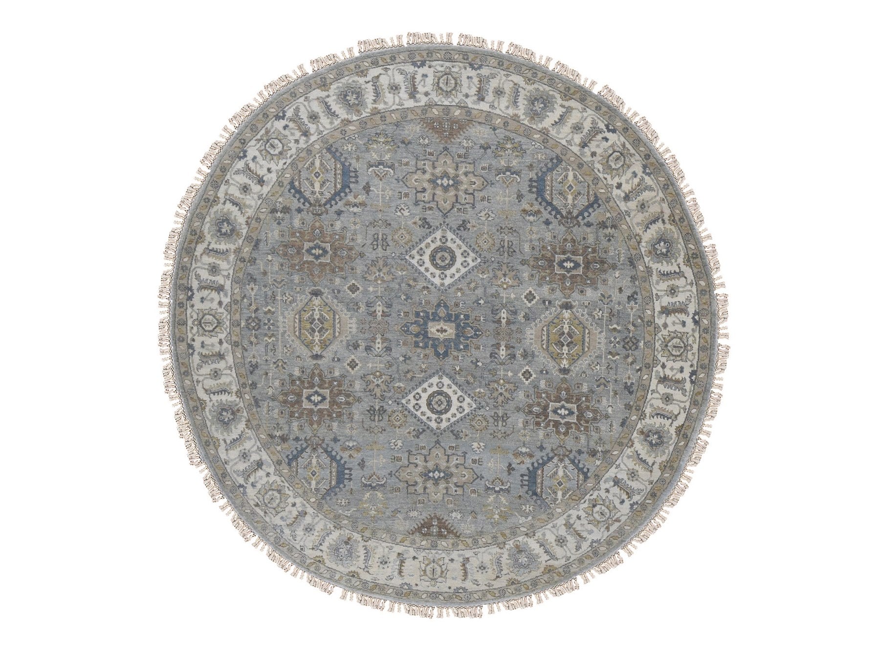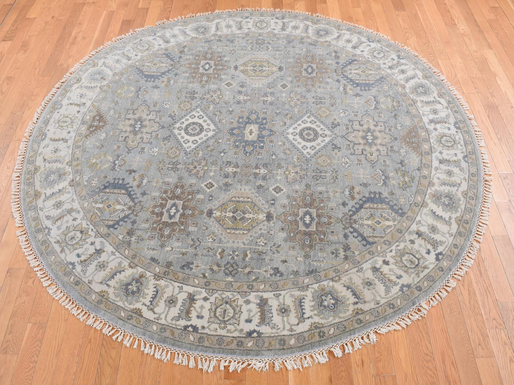 8'1" x 8'1" New Hand Knotted Grey Wool Round Oriental Rug - MOA10287737
