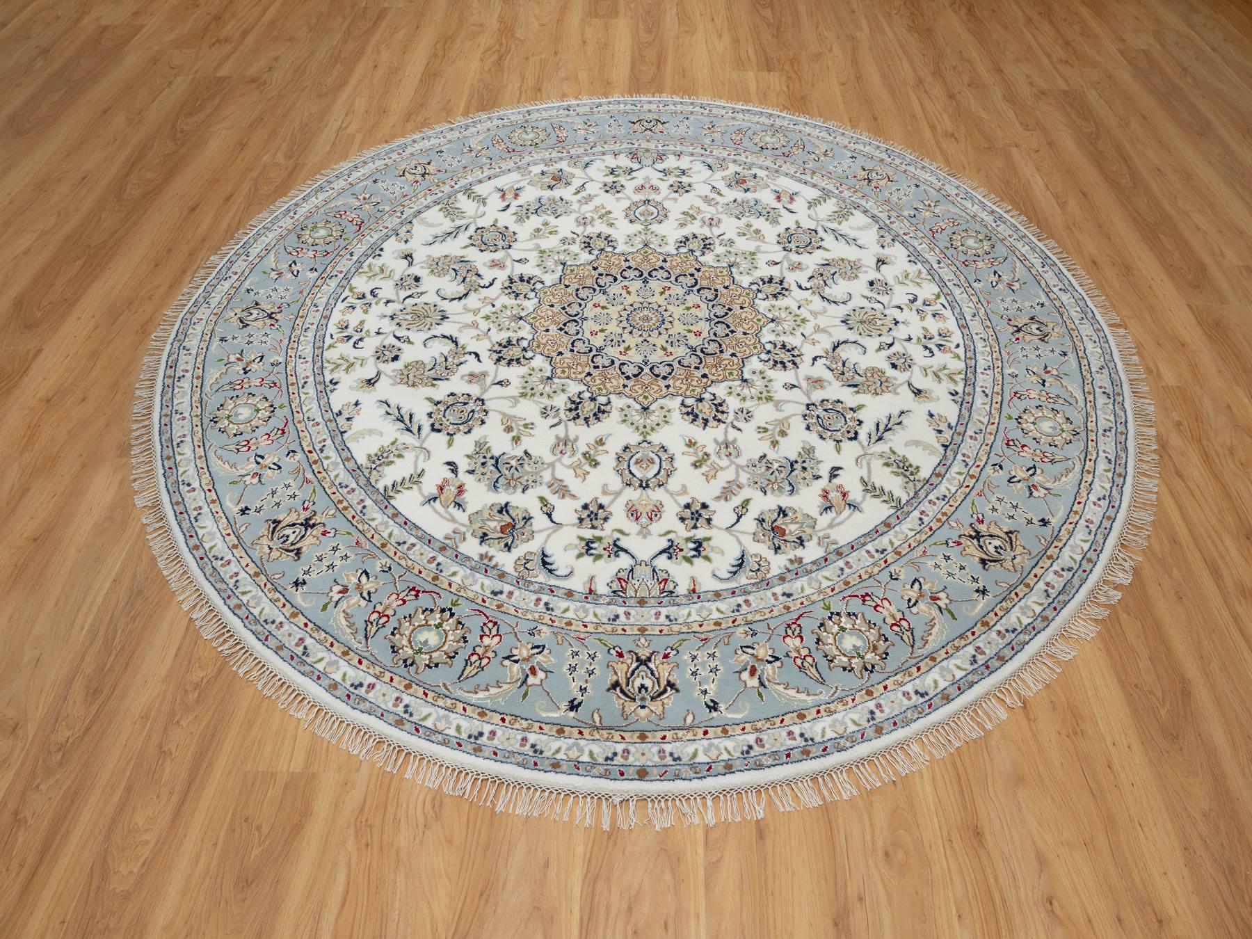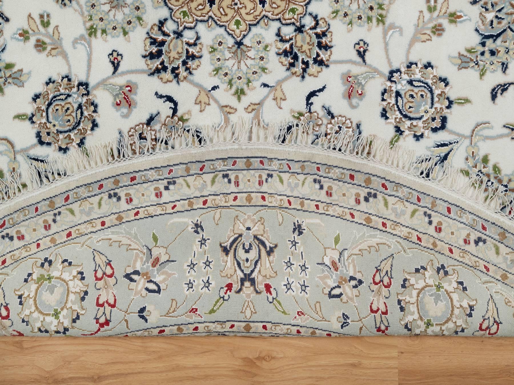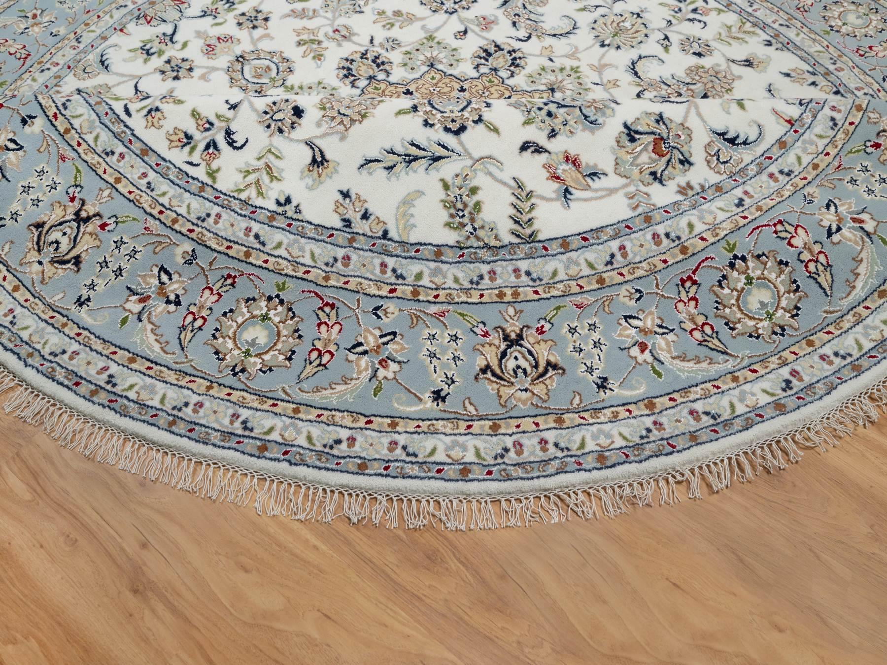 8'1" x 8'1" New Hand Knotted Ivory Wool & Silk Round Oriental Rug - MOA10291036