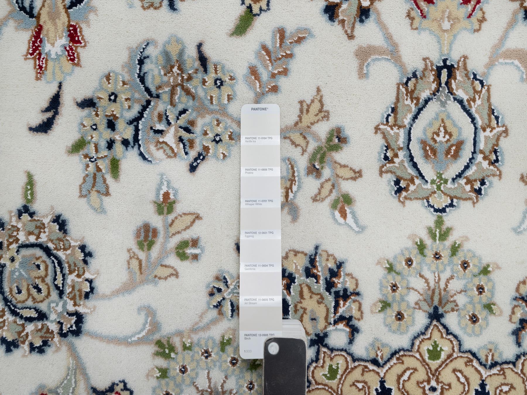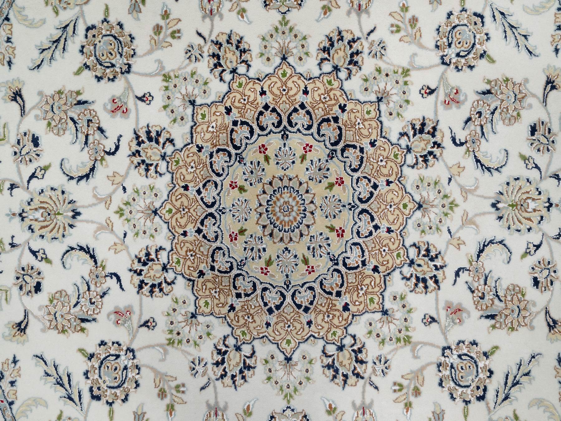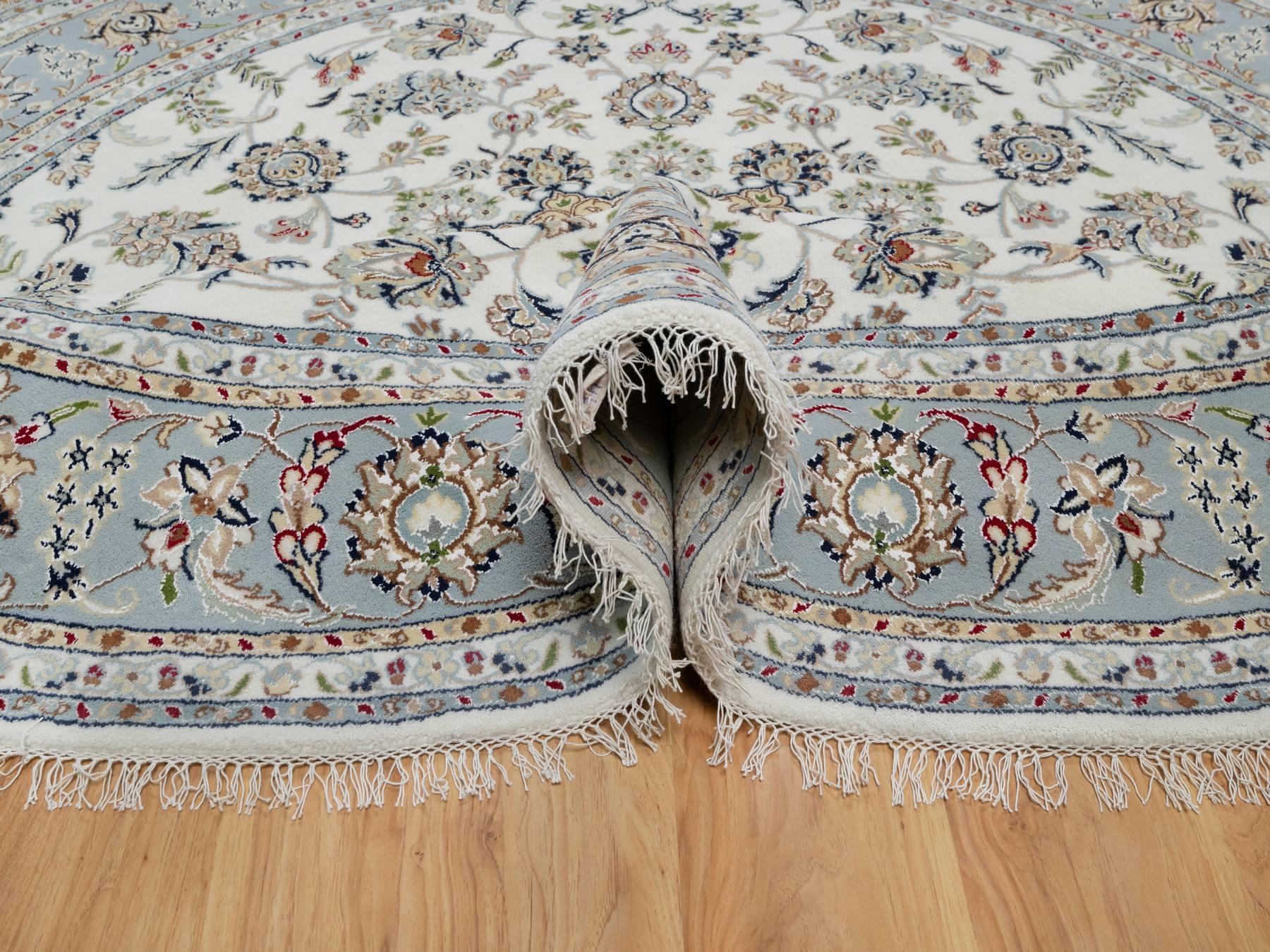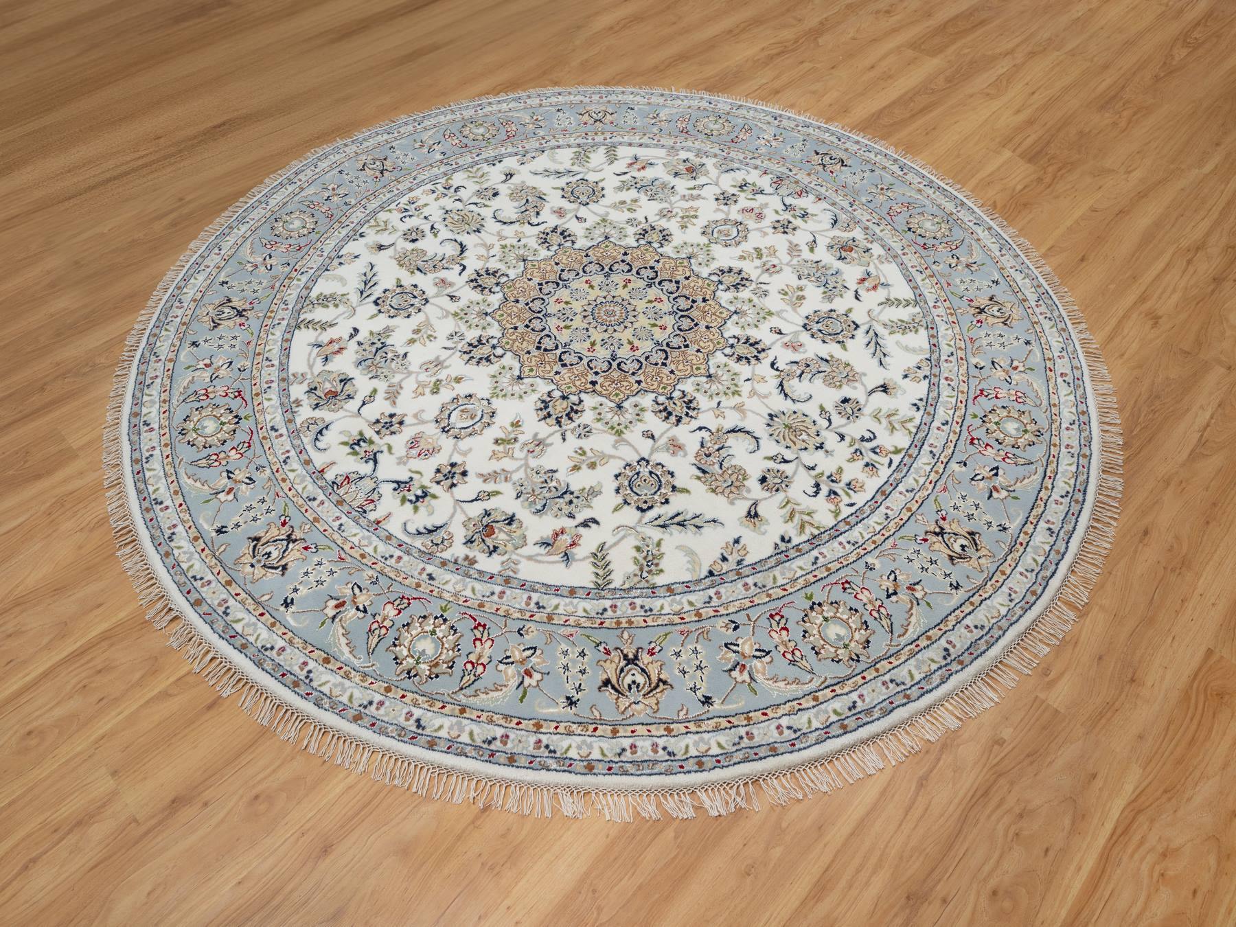 8'1" x 8'1" New Hand Knotted Ivory Wool & Silk Round Oriental Rug - MOA10291036