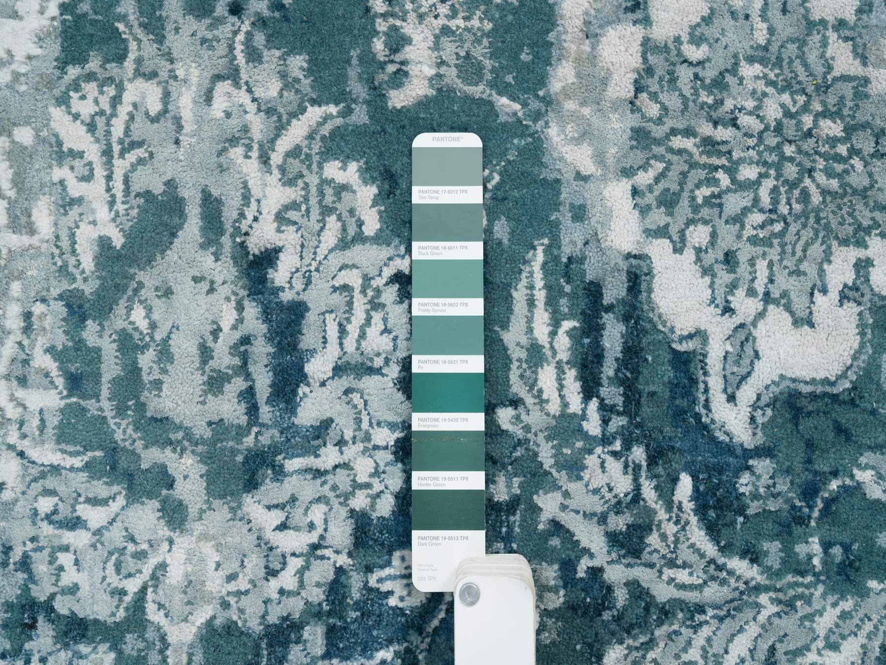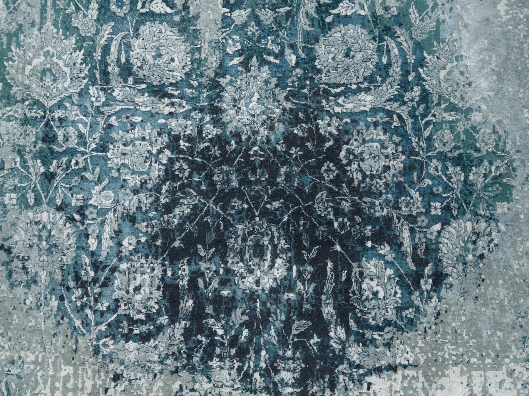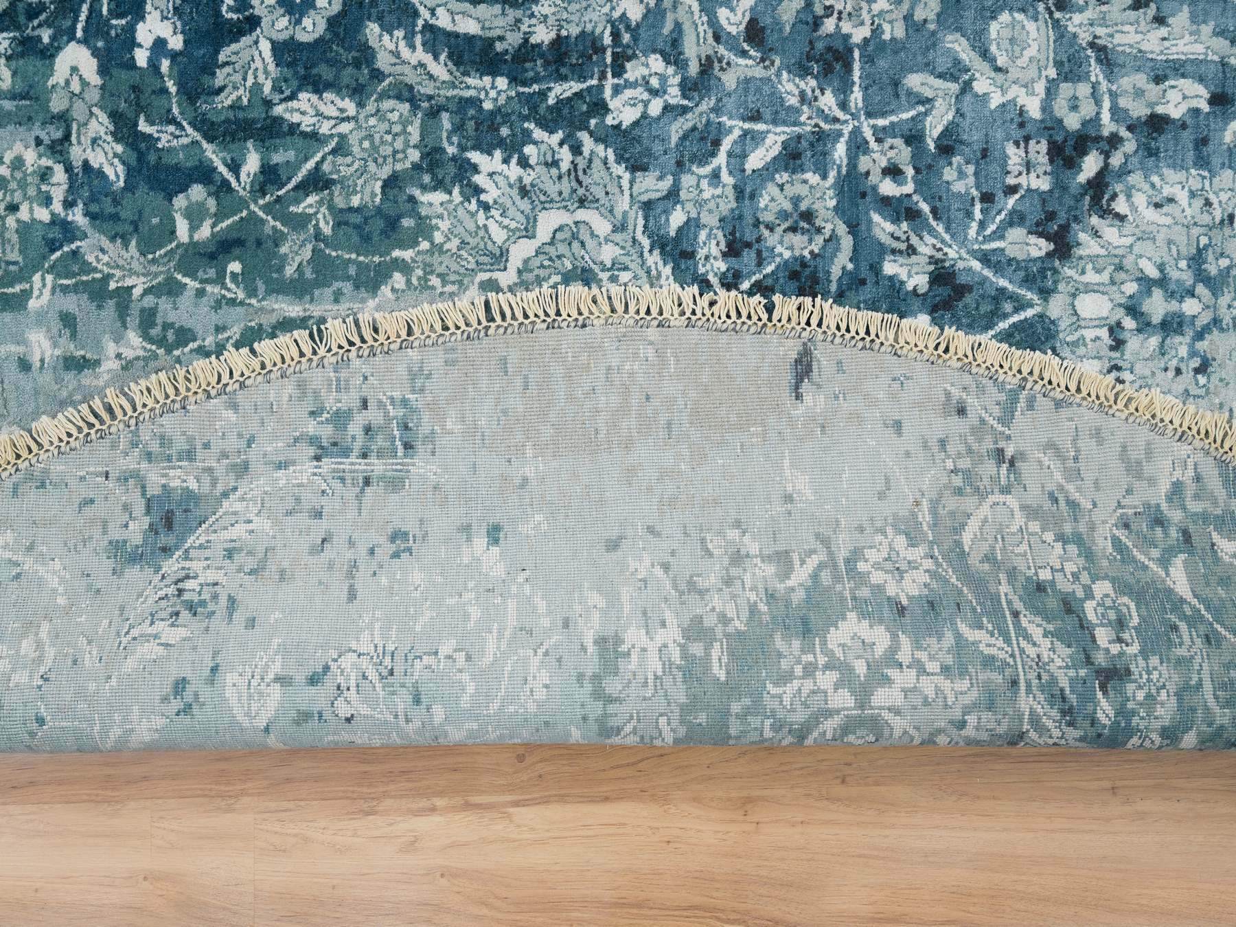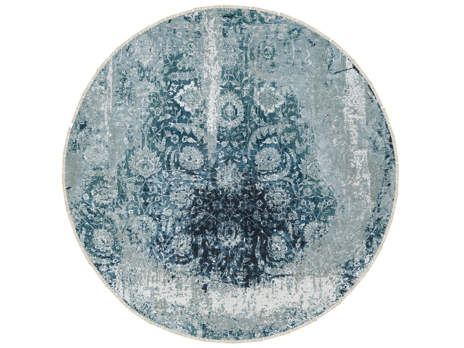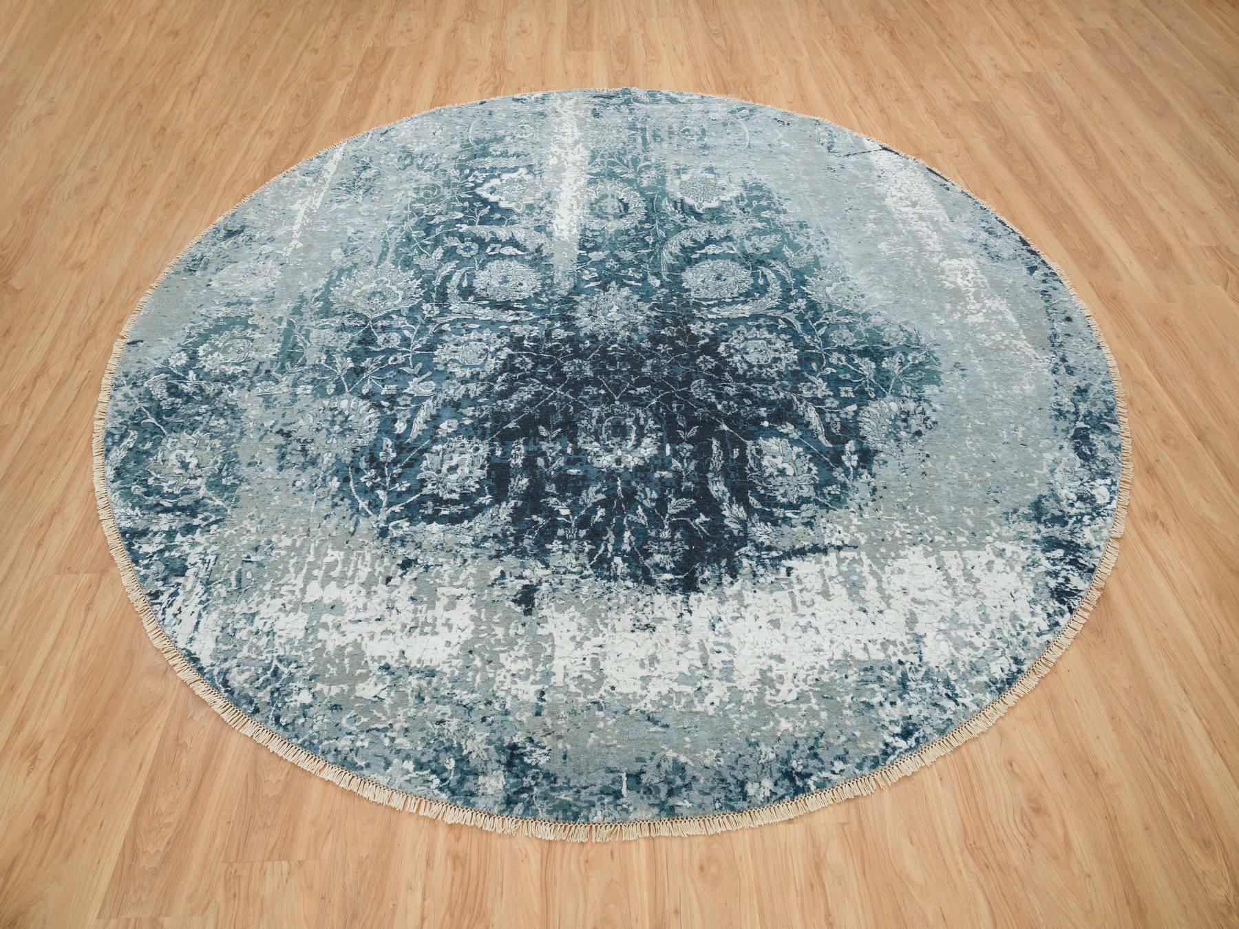 9'10" x 9'10" New Hand Knotted Blue Wool & Silk Round Oriental Rug - MOA10265630