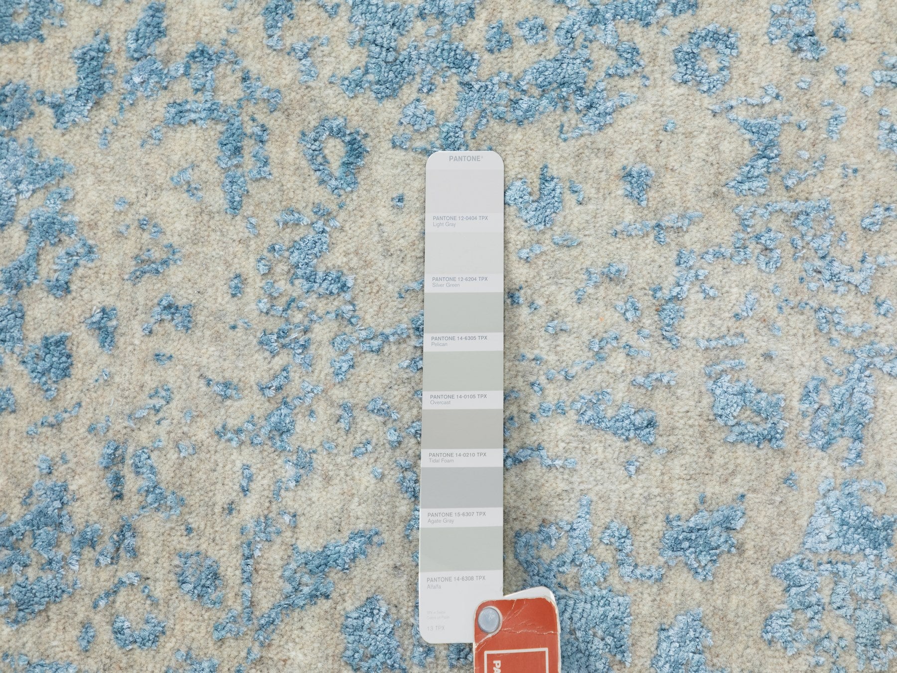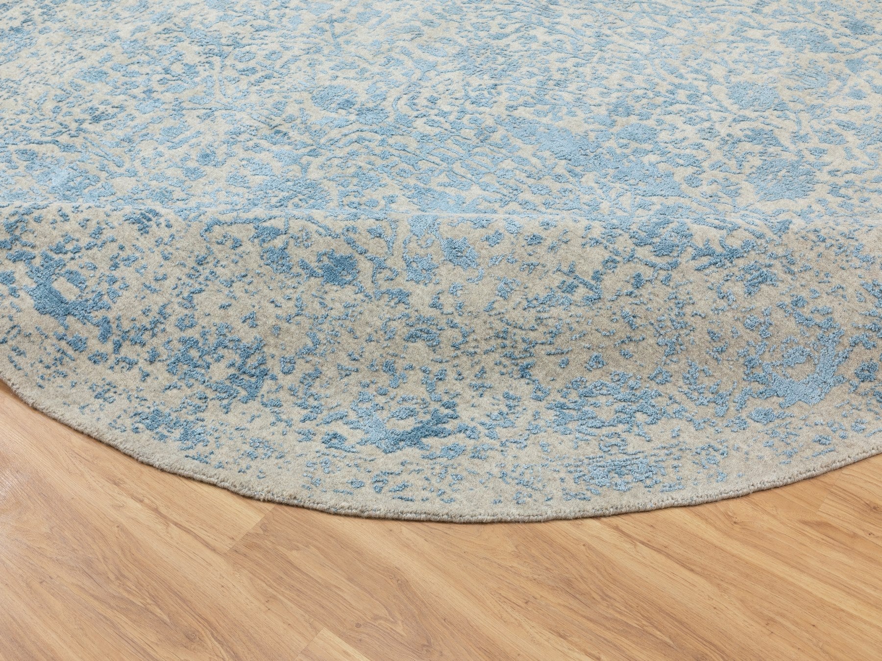 9'10" x 9'10" New Hand Loomed Blue Wool & Silk Round Oriental Rug - MOA10262066