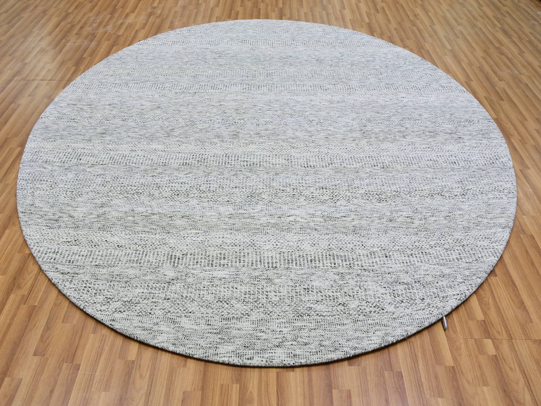 9'5" x 9'6" New Hand Knotted Grey Wool Round Oriental Rug - MOA10279511