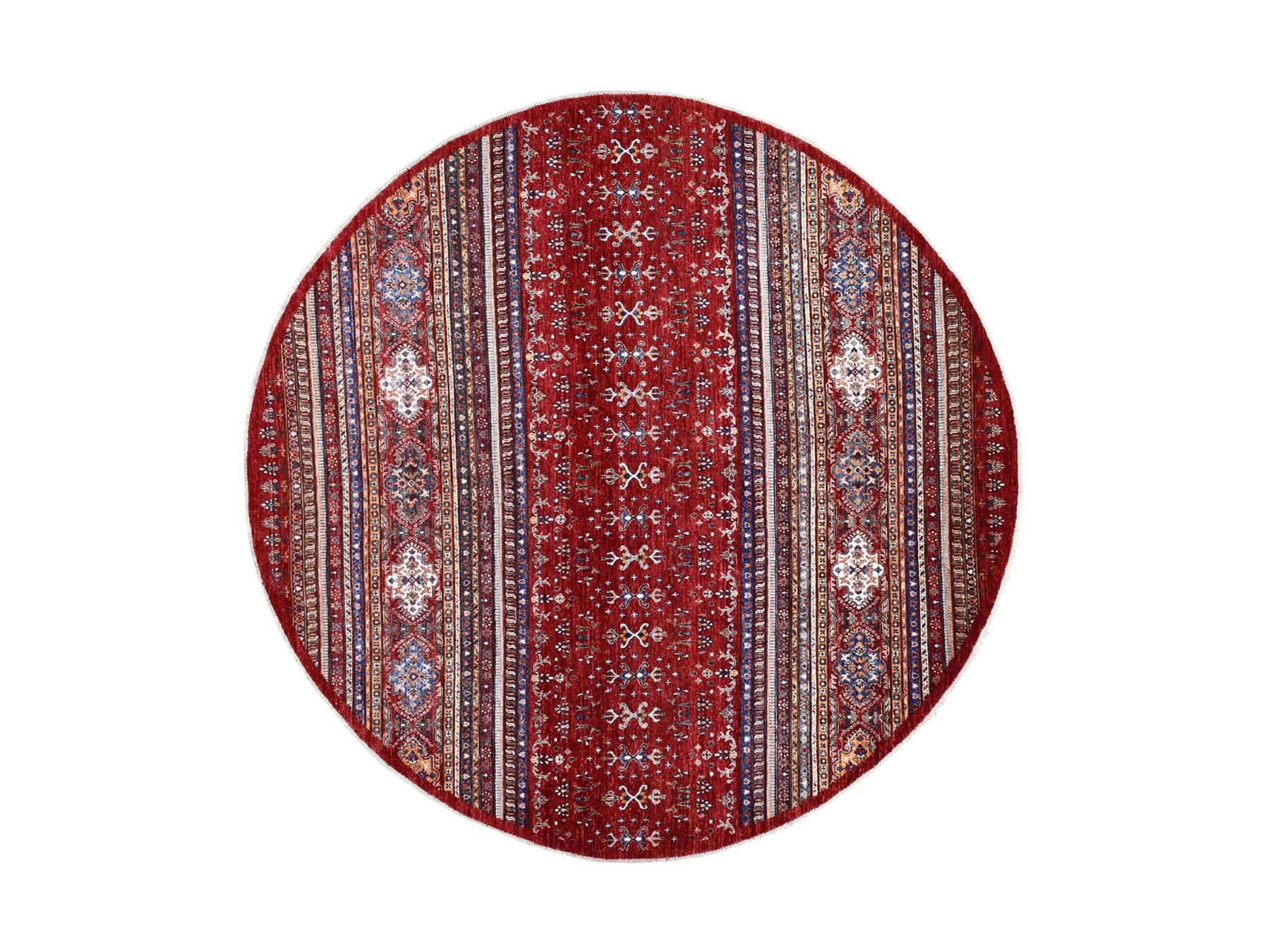 9'7" x 9'7" New Hand Knotted Red Wool Round Oriental Rug - MOA10254958
