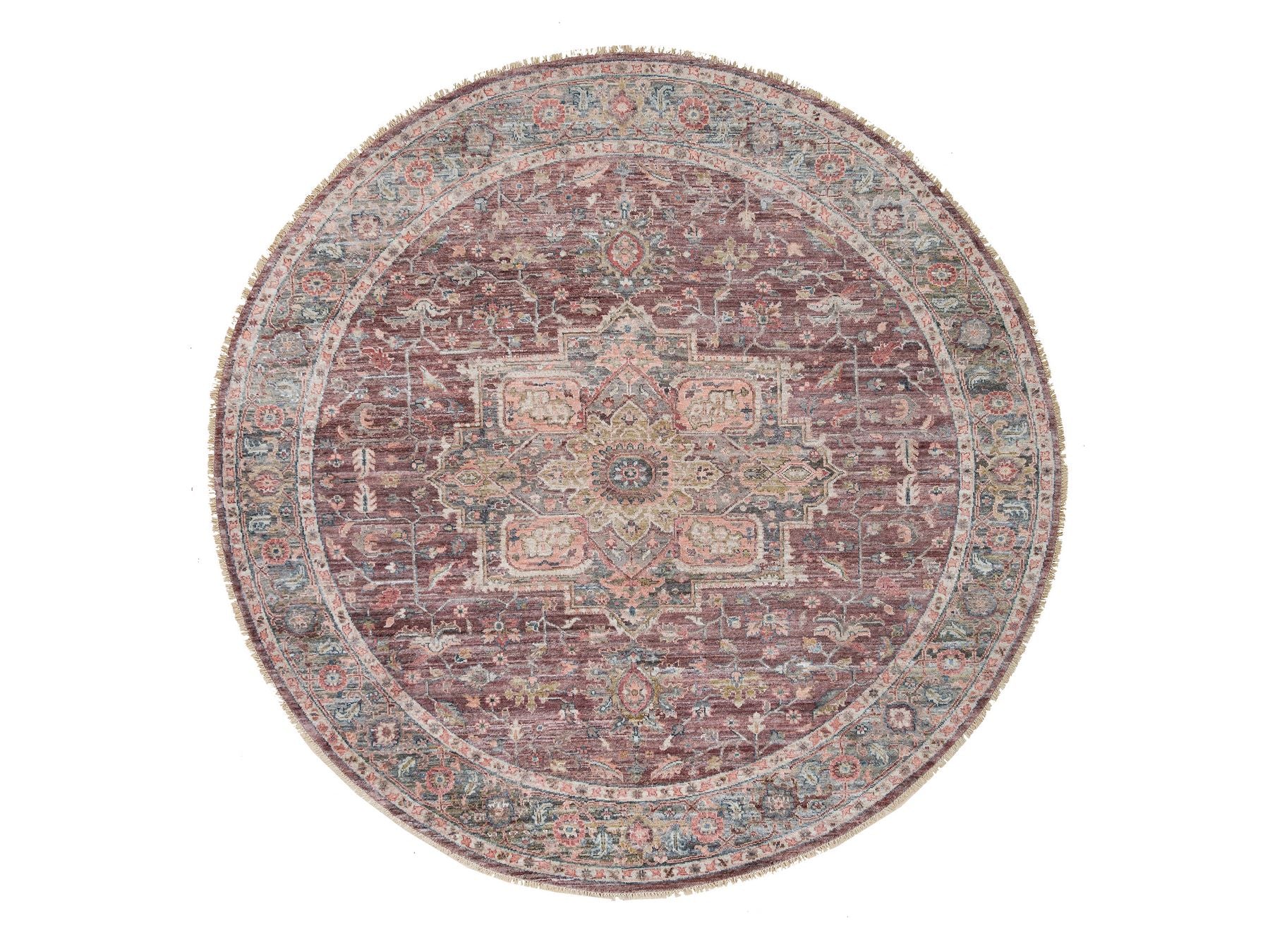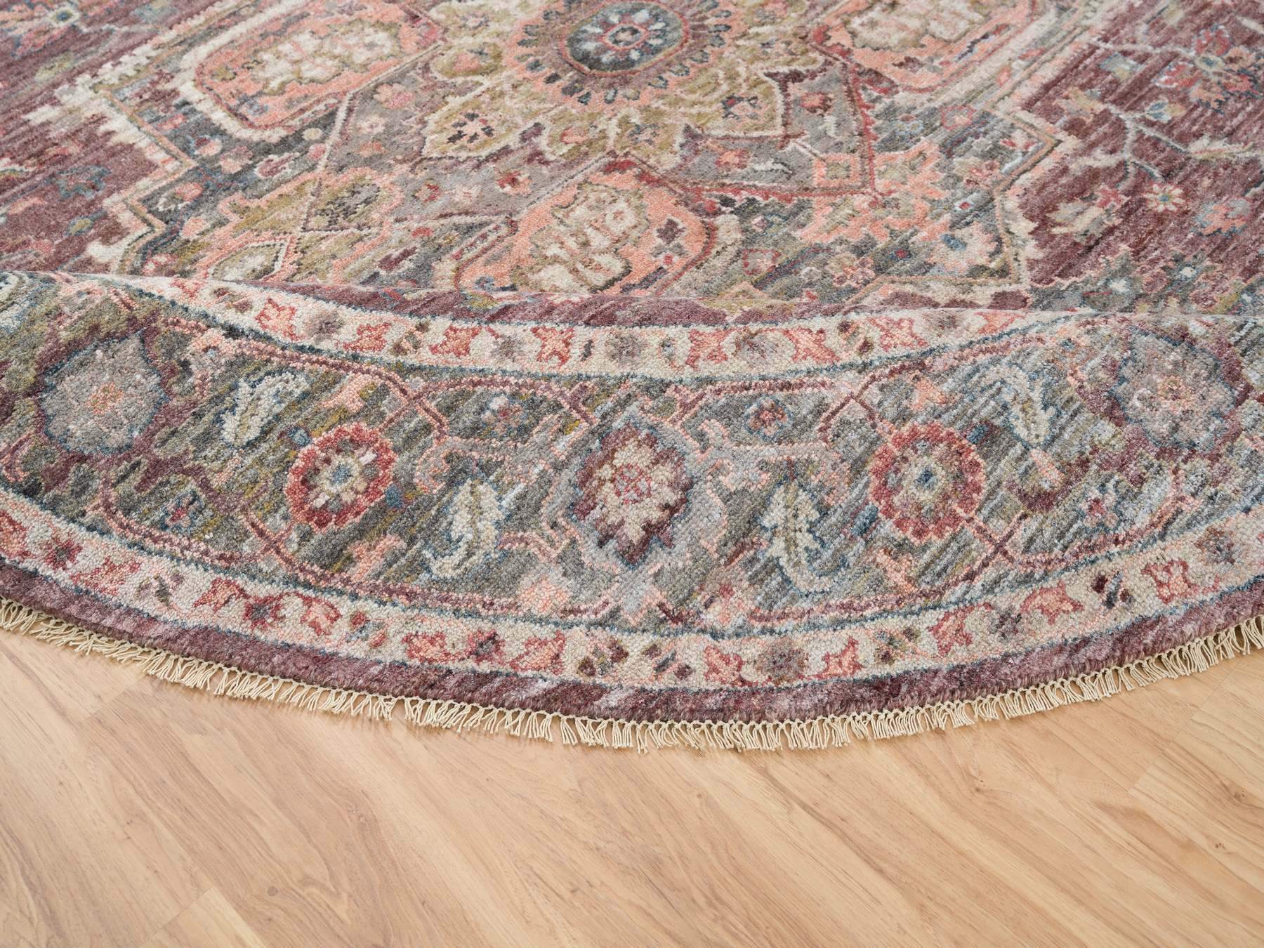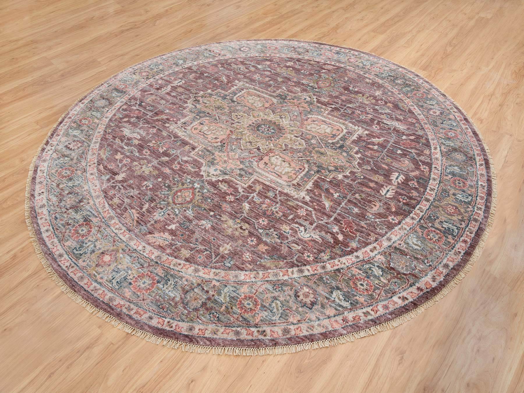 9'7" x 9'7" New Hand Knotted Red Wool Round Oriental Rug - MOA10265633