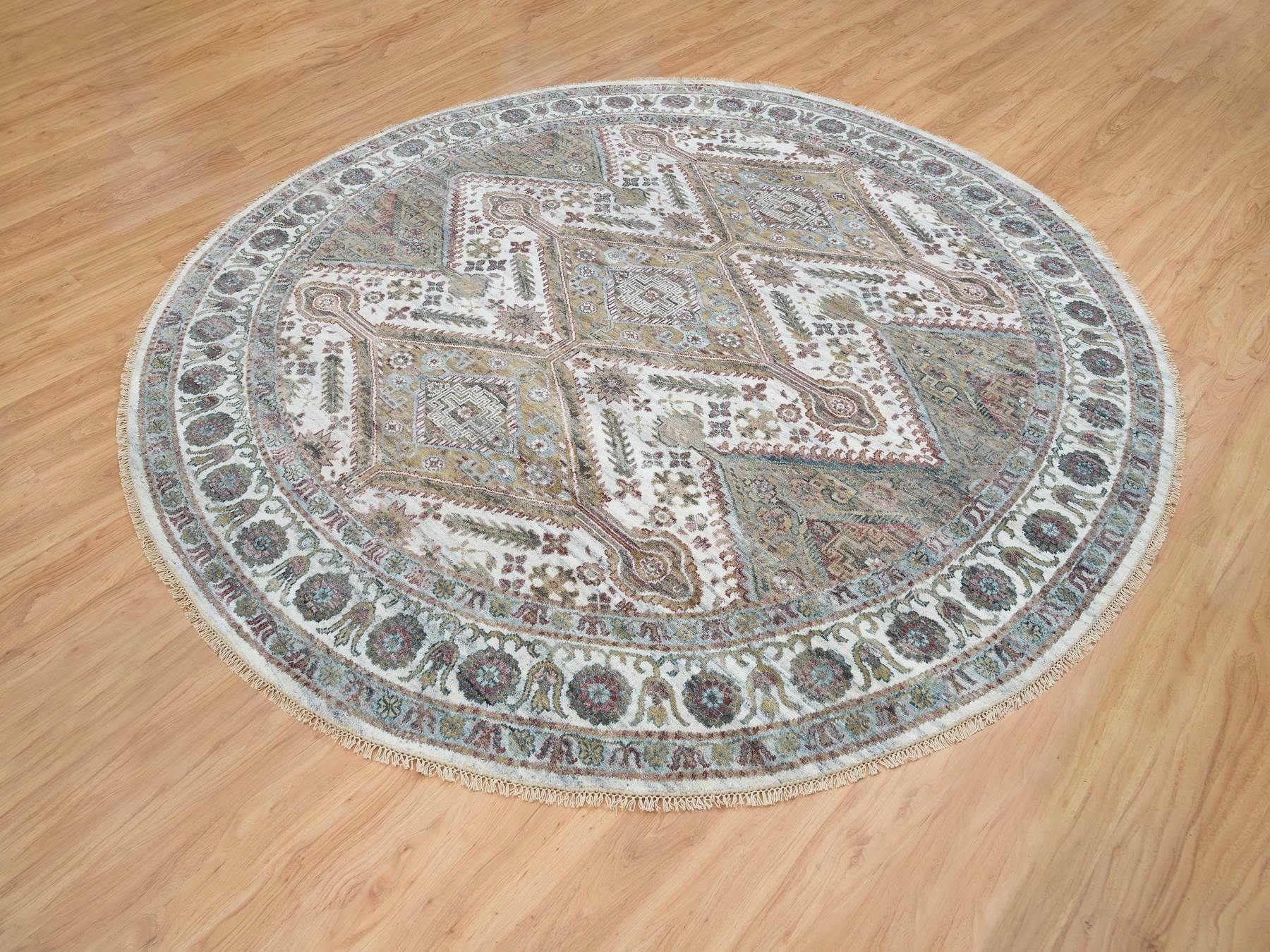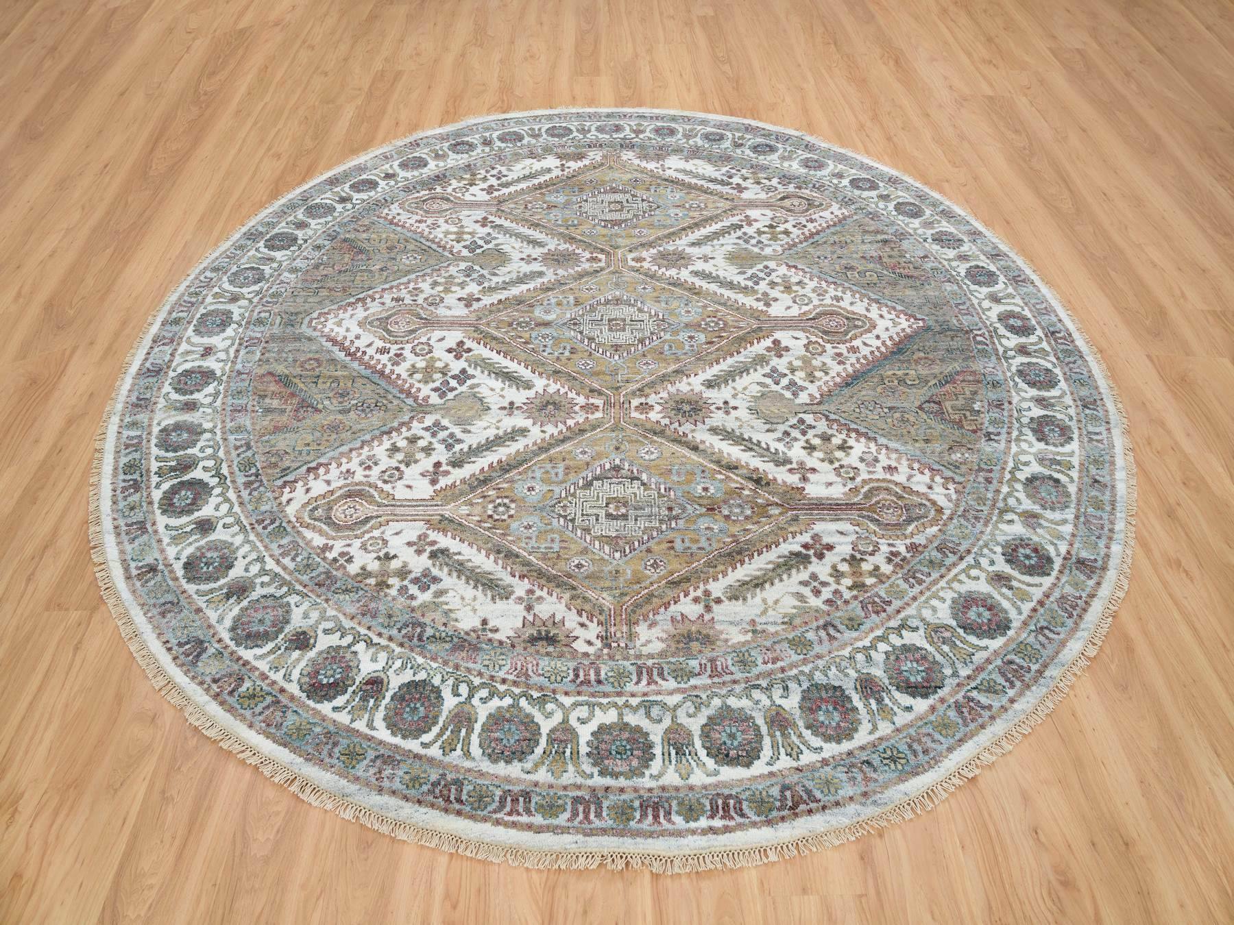 9'9" x 9'9" New Hand Knotted Ivory Wool Round Oriental Rug - MOA10265589