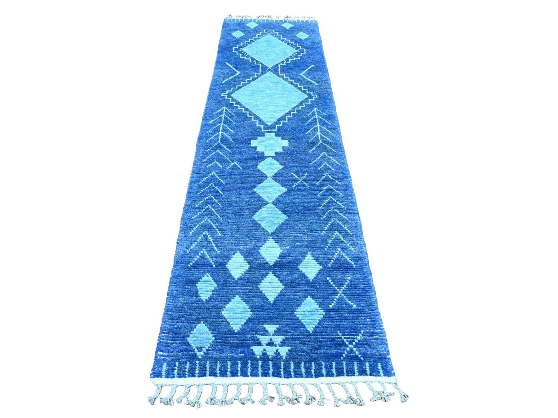 2'9" x 10'7" New Hand Knotted Blue Wool Runner Oriental Rug - MOA10220749