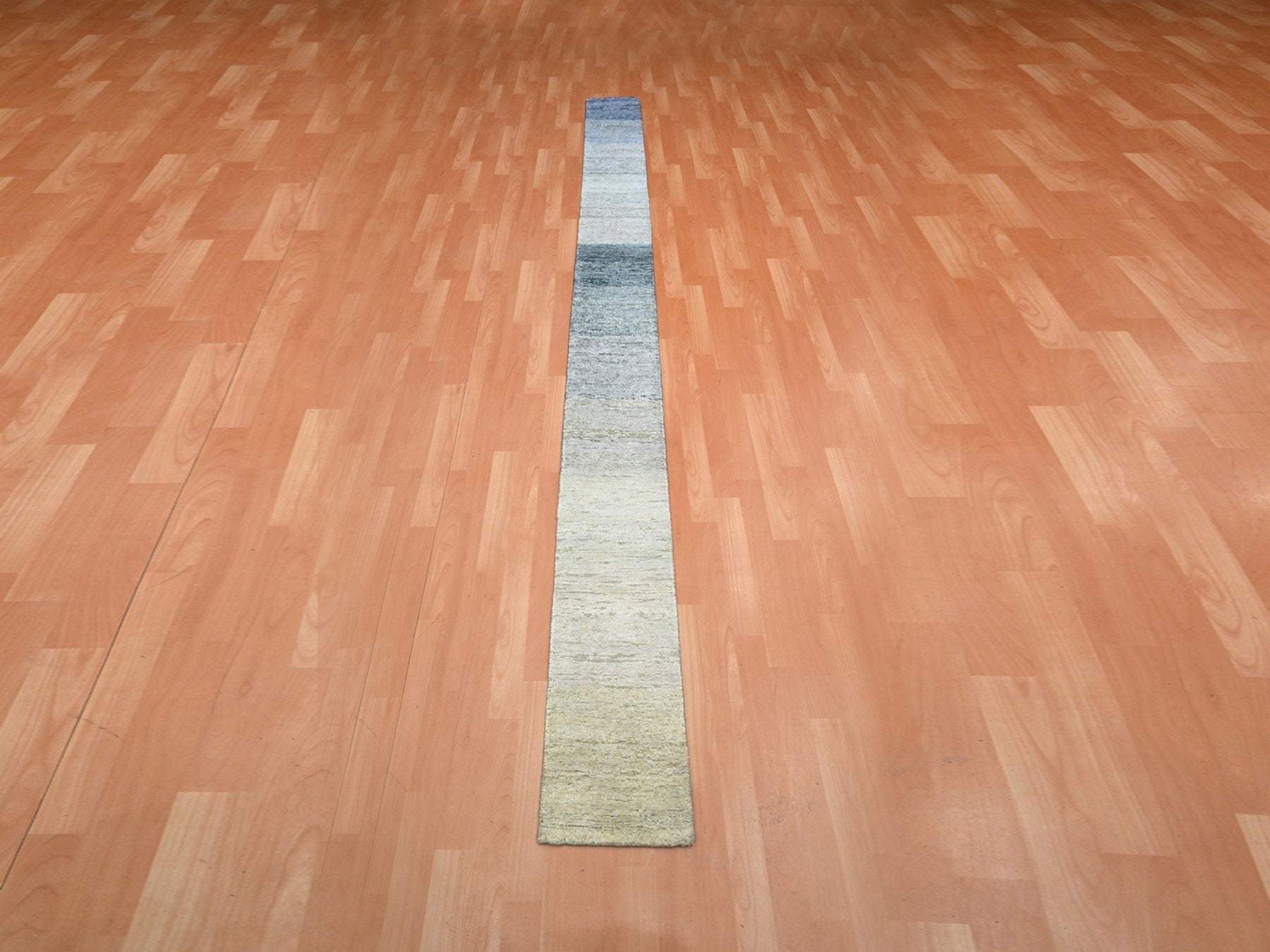 1'0" x 12'0" New Hand Knotted Grey Wool & Silk Runner Oriental Rug - MOA10275885