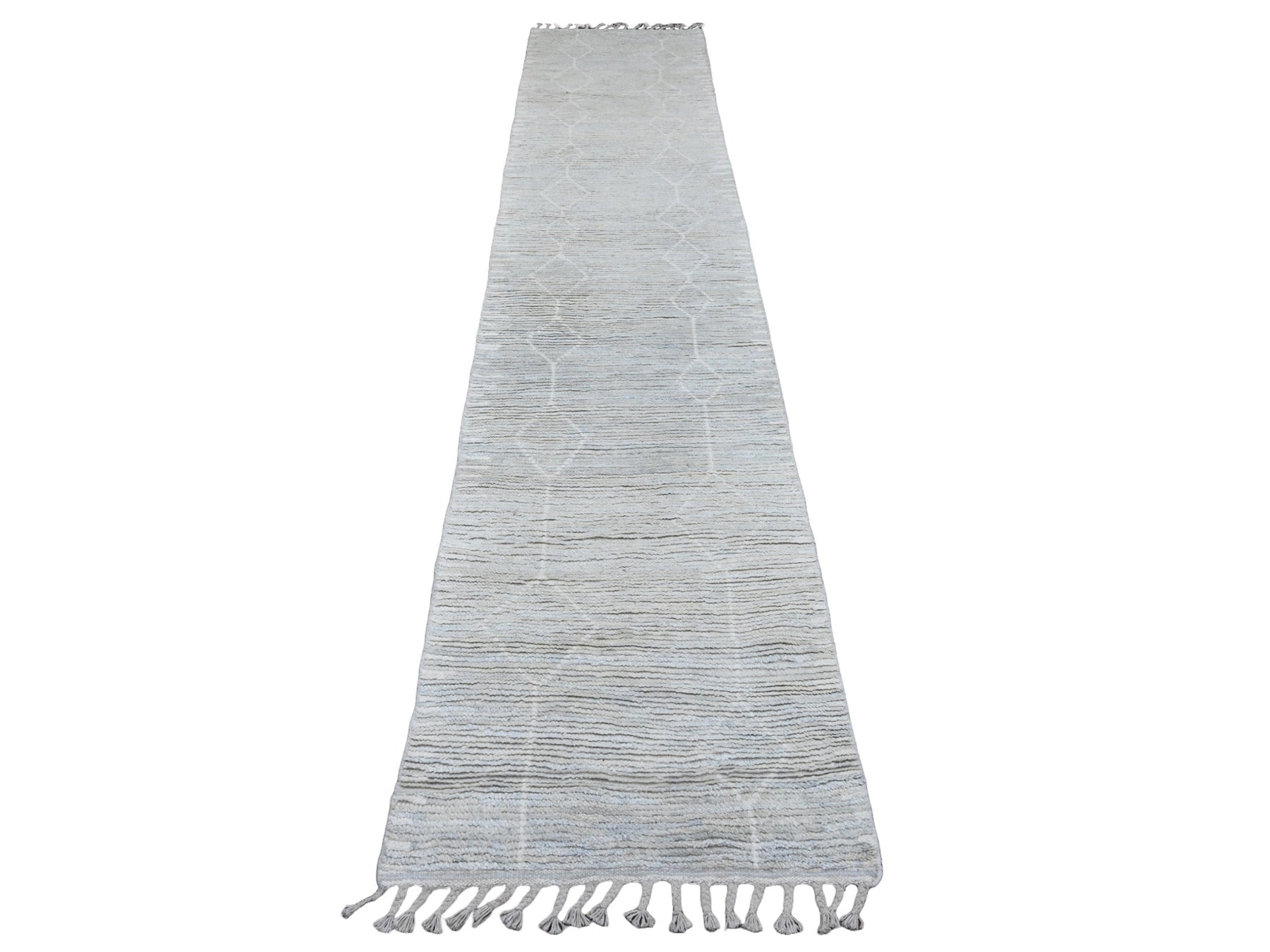 2'6" x 12'9" New Hand Knotted Ivory Wool Runner Oriental Rug - MOA10220278