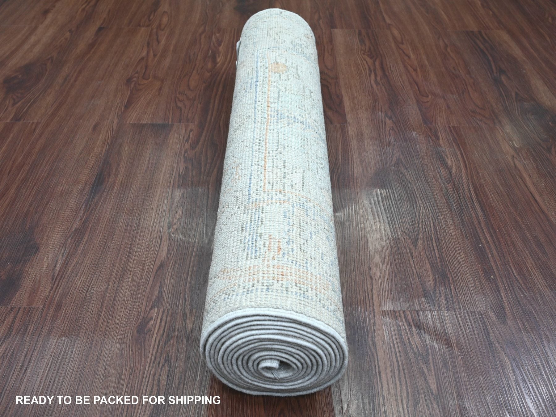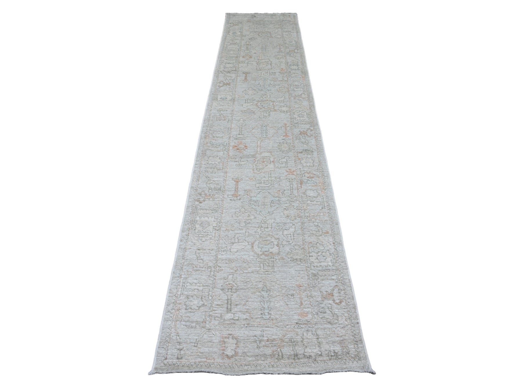 2'7" x 12'6" New Hand Knotted Grey Wool Runner Oriental Rug - MOA10220882