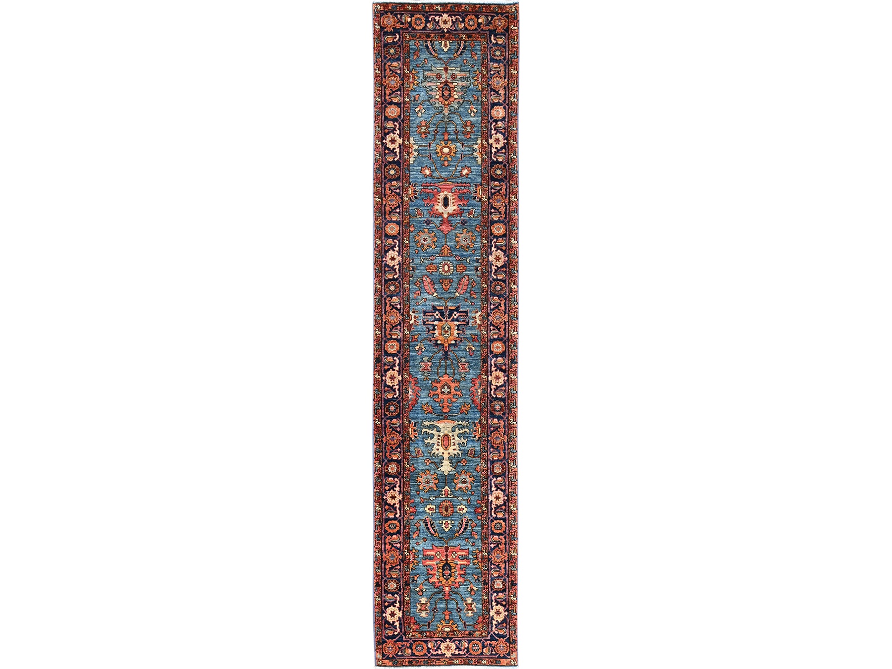 2'9" x 12'10" New Hand Knotted Blue Wool Runner Oriental Rug - MOA1021106