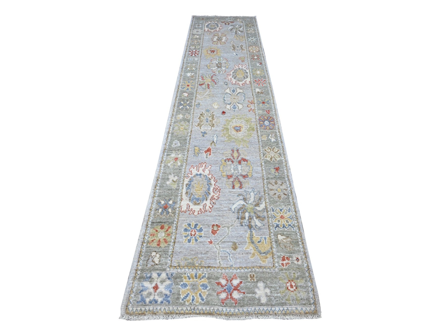 2'9" x 12'6" New Hand Knotted Grey Wool Runner Oriental Rug - MOA10289536