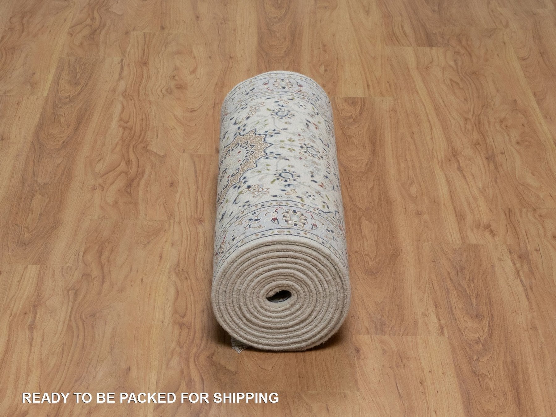2'10" x 14'6" New Hand Knotted Ivory Wool & Silk Runner Oriental Rug - MOA10291614
