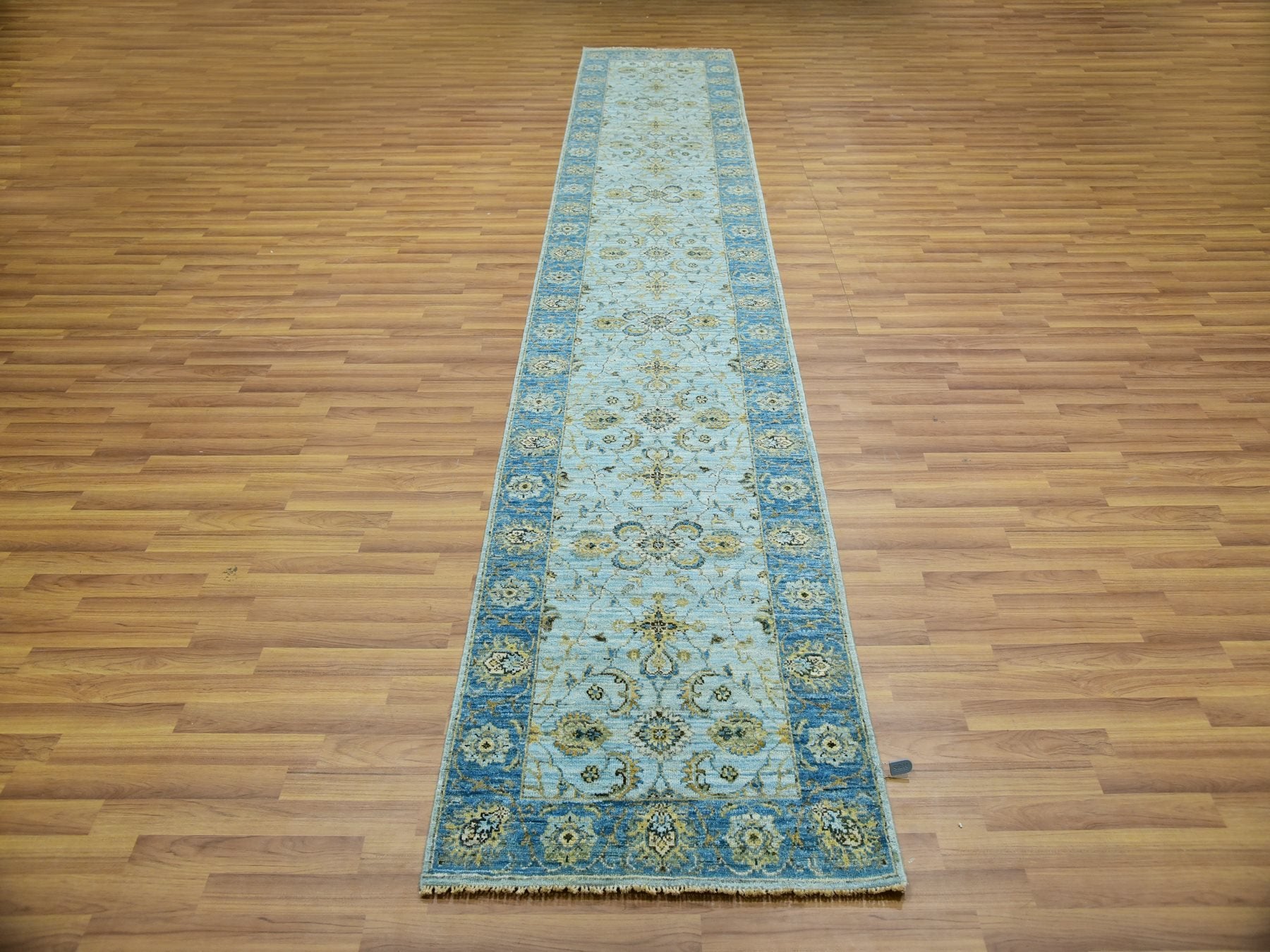 2'6" x 14'0" New Hand Knotted Blue Wool Runner Oriental Rug - MOA10276050