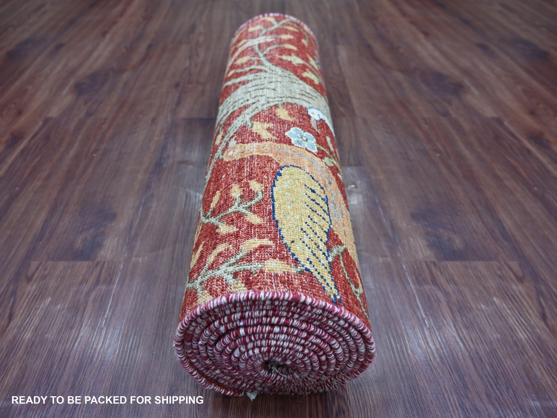 2'7" x 14'1" New Hand Knotted Red Wool Runner Oriental Rug - MOA10222491
