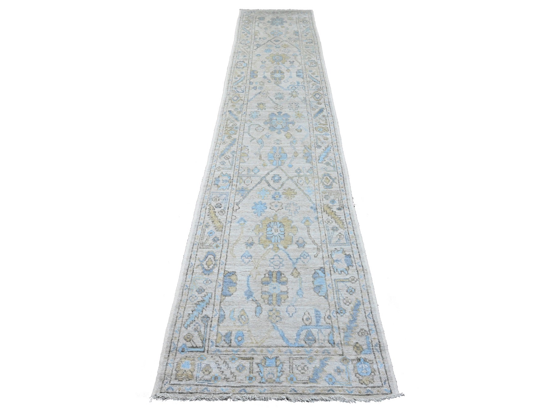 2'8" x 13'6" New Hand Knotted Ivory Wool Runner Oriental Rug - MOA10289892