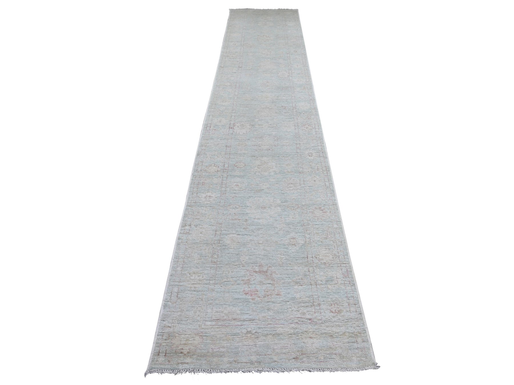 2'8" x 13'8" New Hand Knotted Blue Wool Runner Oriental Rug - MOA10222024