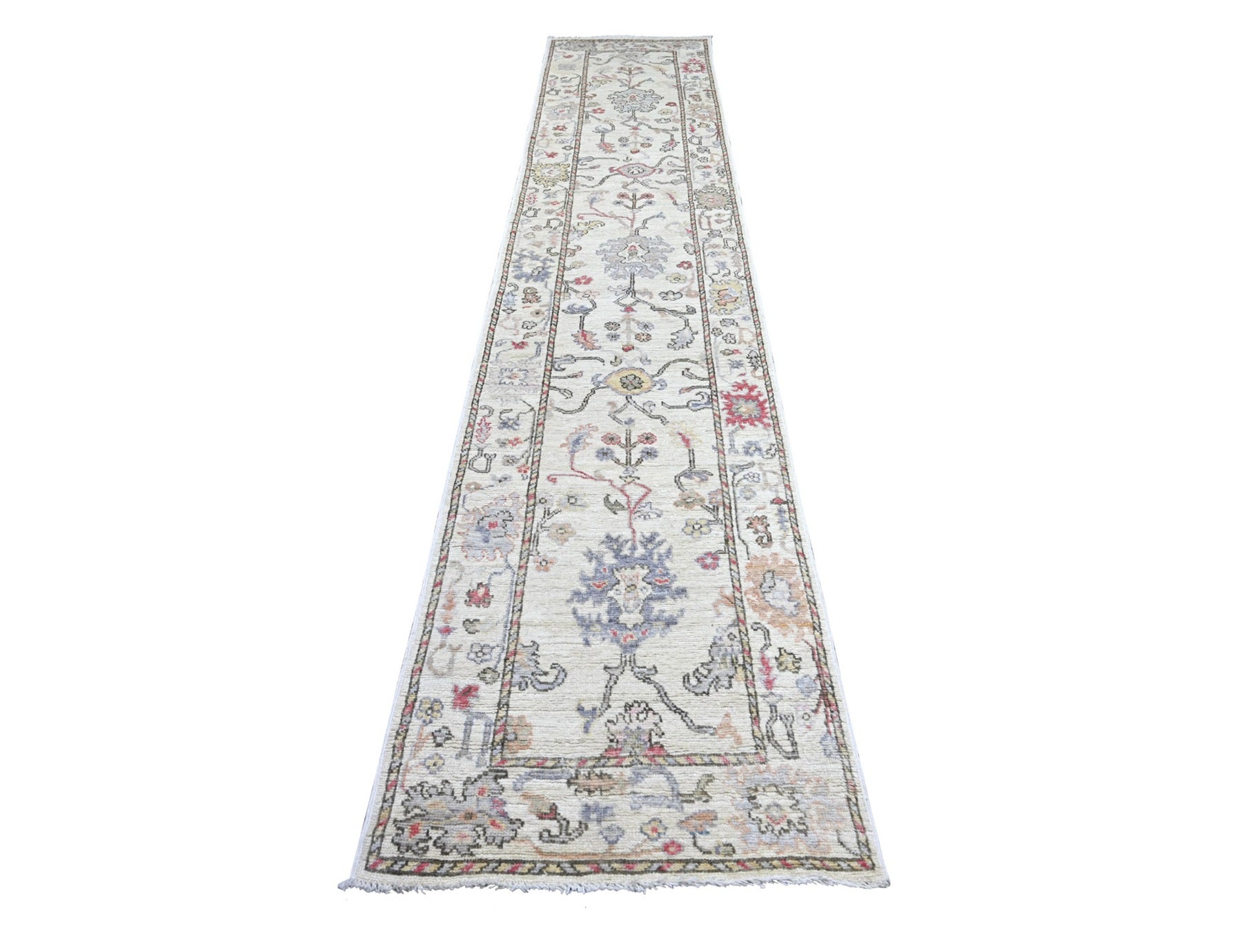 2'8" x 13'8" New Hand Knotted Ivory Wool Runner Oriental Rug - MOA10222393