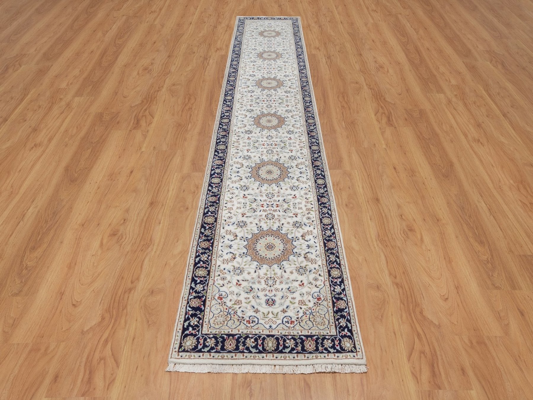 2'8" x 14'4" New Hand Knotted Ivory Wool & Silk Runner Oriental Rug - MOA10292013