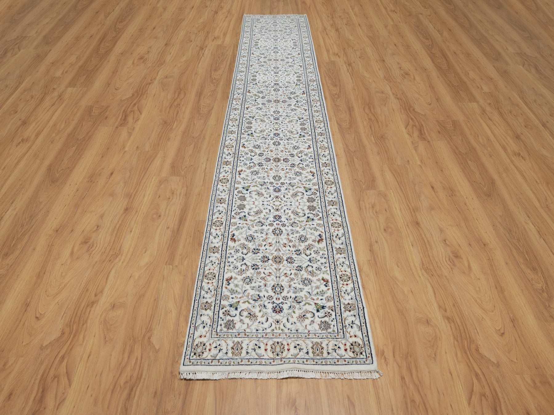 2'9" x 14'1" New Hand Knotted Ivory Wool & Silk Runner Oriental Rug - MOA10291012