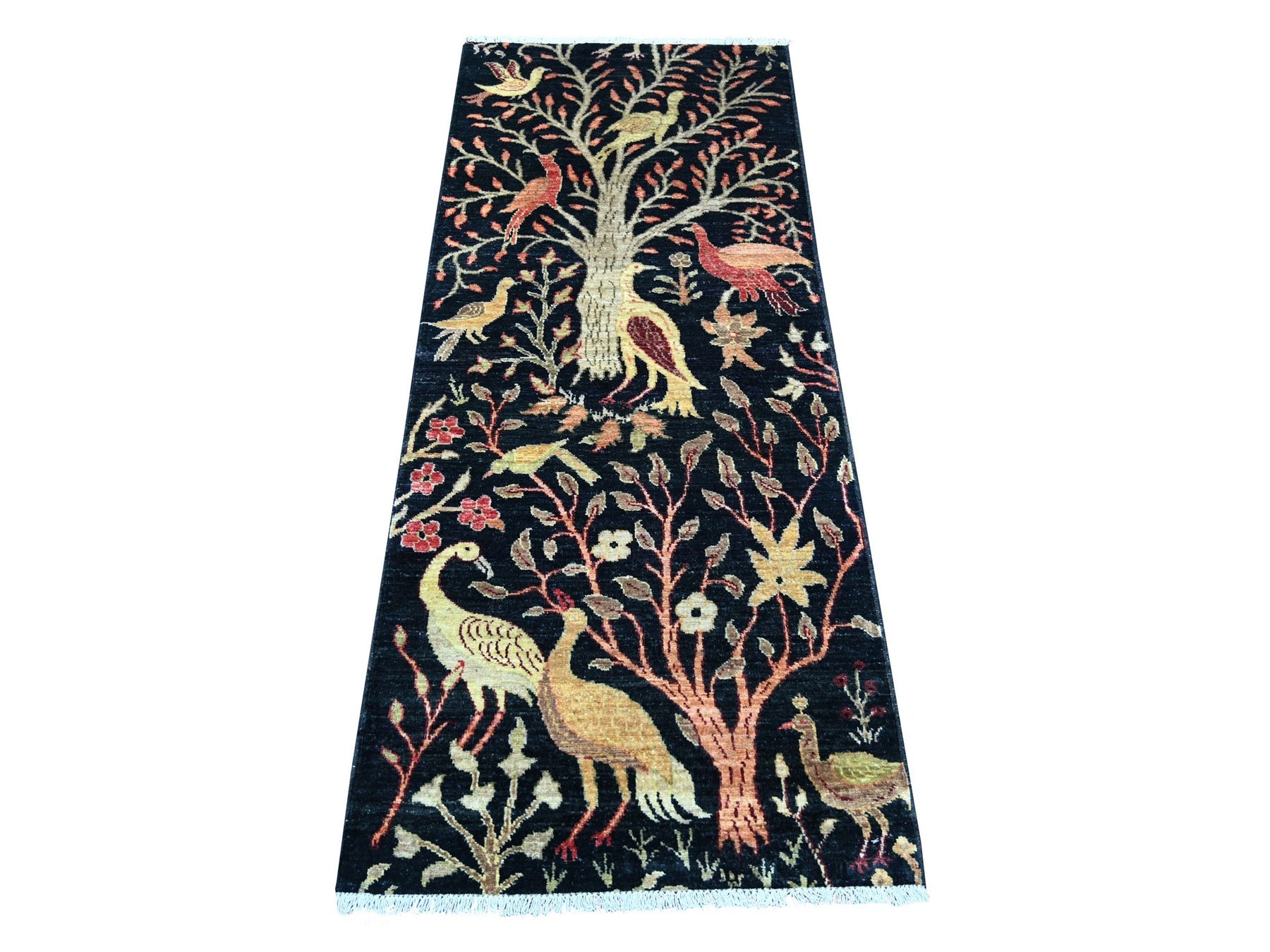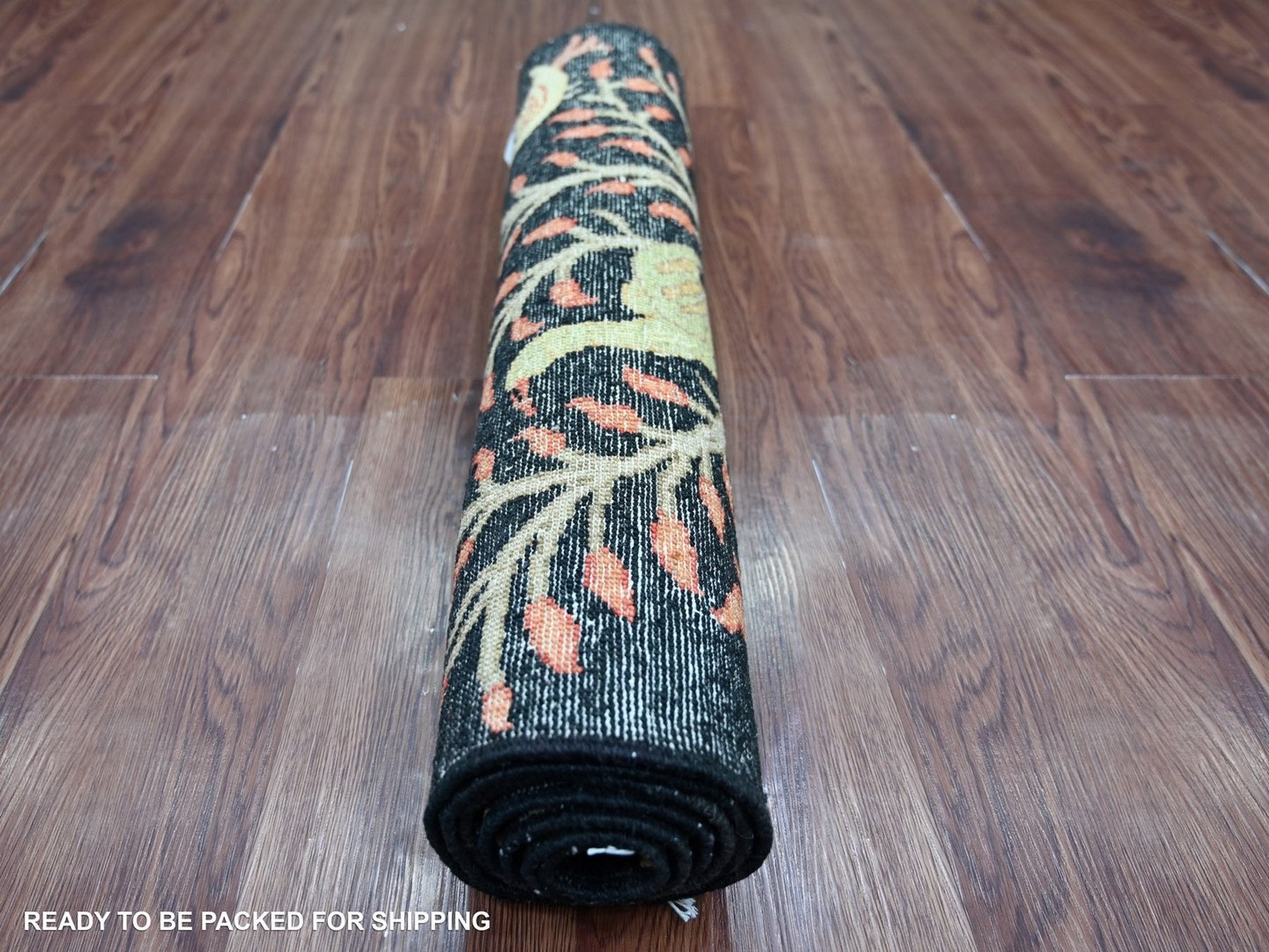 2'5" x 5'10" New Hand Knotted Black Wool Runner Oriental Rug - MOA10222785