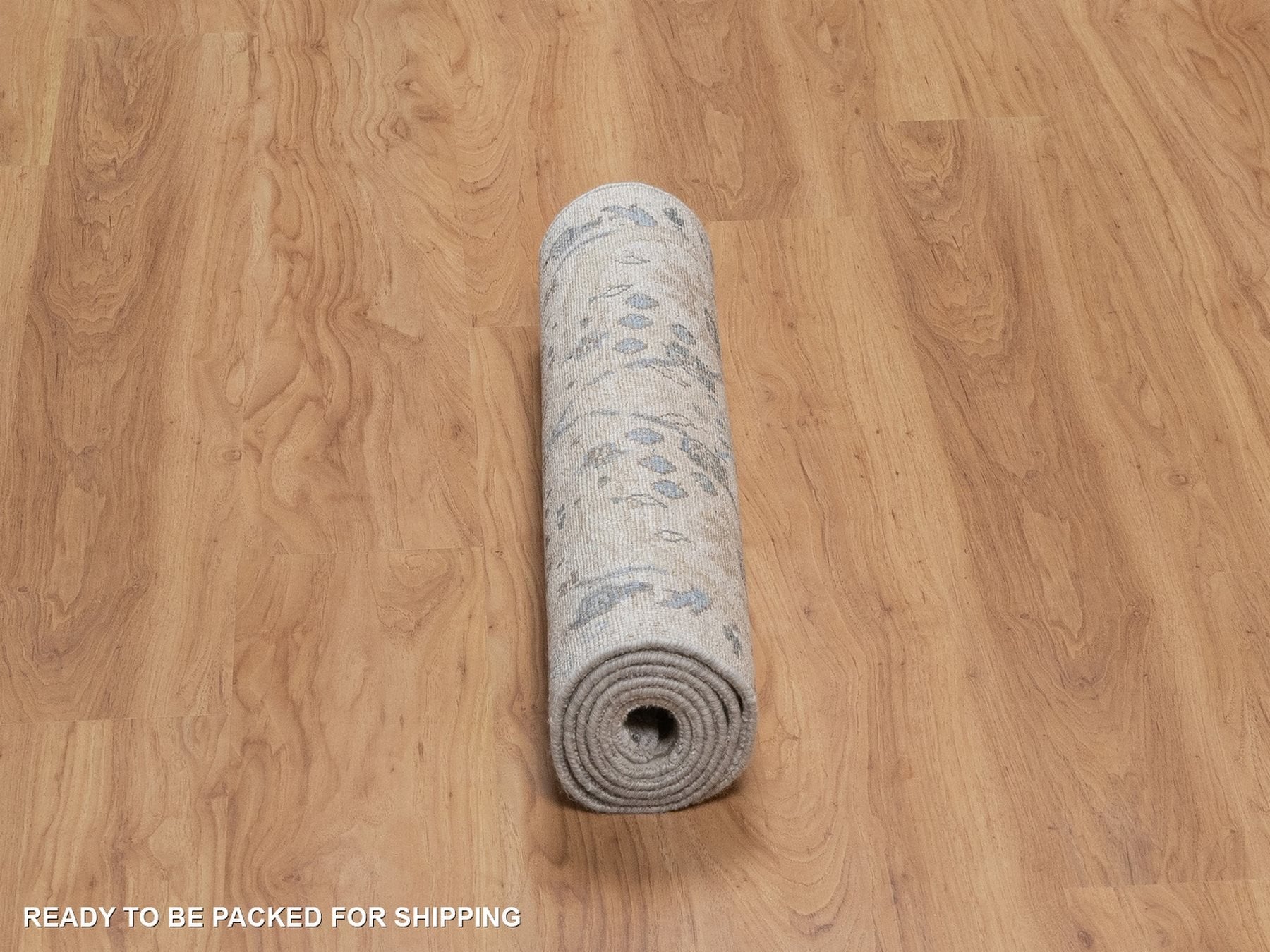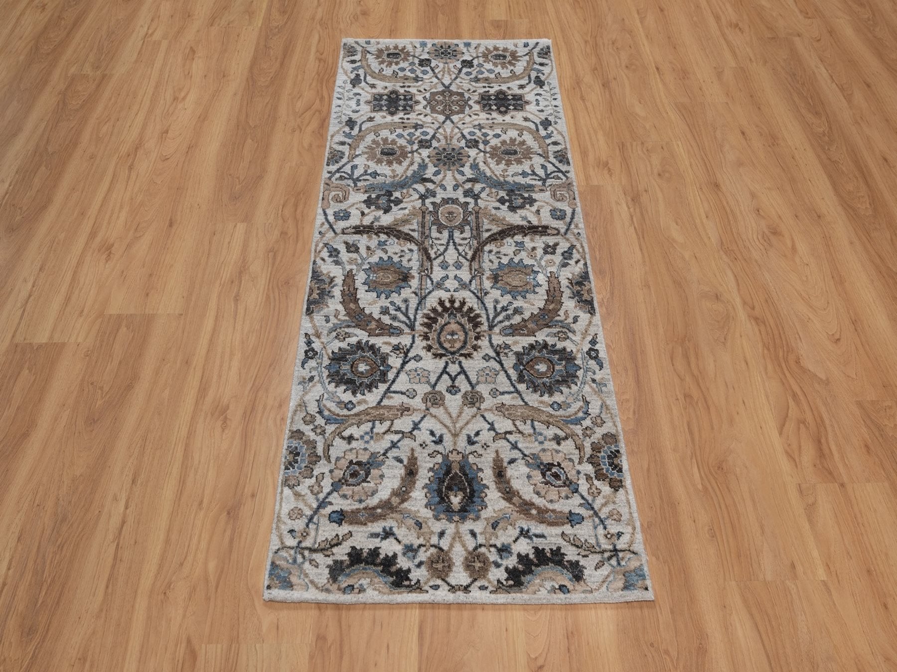 2'5" x 6'1" New Hand Knotted Grey Wool & Silk Runner Oriental Rug - MOA10292061