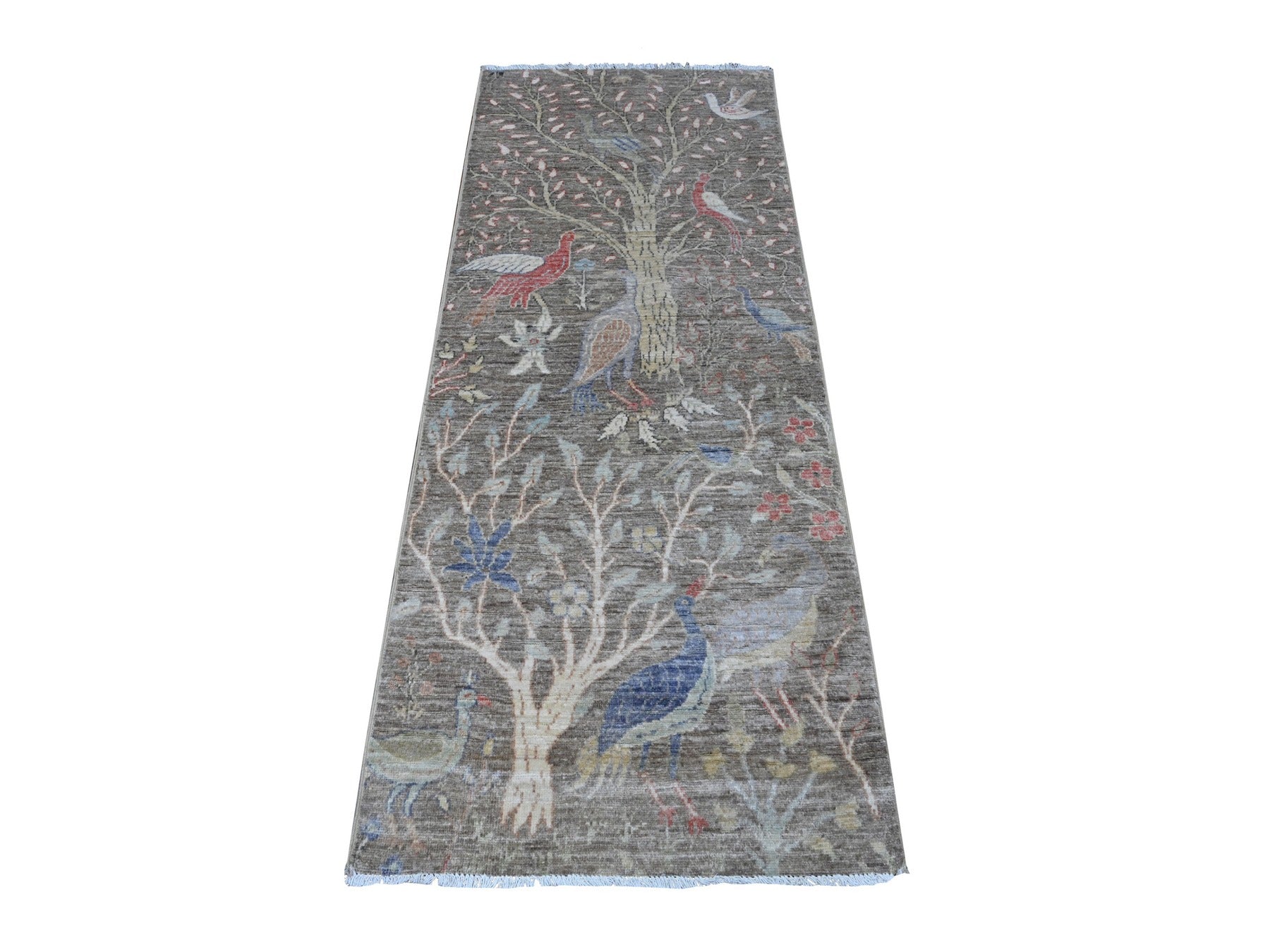 2'6" x 6'2" New Hand Knotted Grey Wool Runner Oriental Rug - MOA10289583