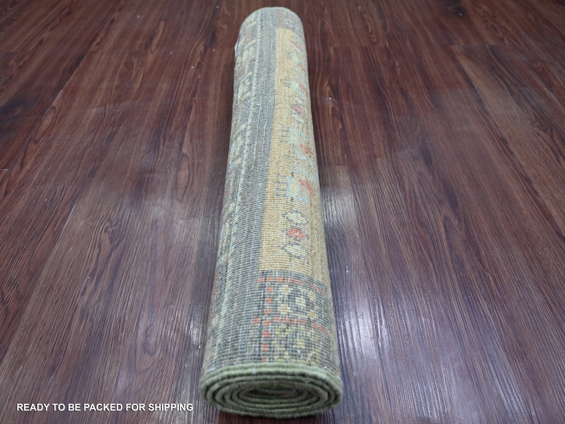 2'7" x 5'9" New Hand Knotted Grey Wool Runner Oriental Rug - MOA10222378
