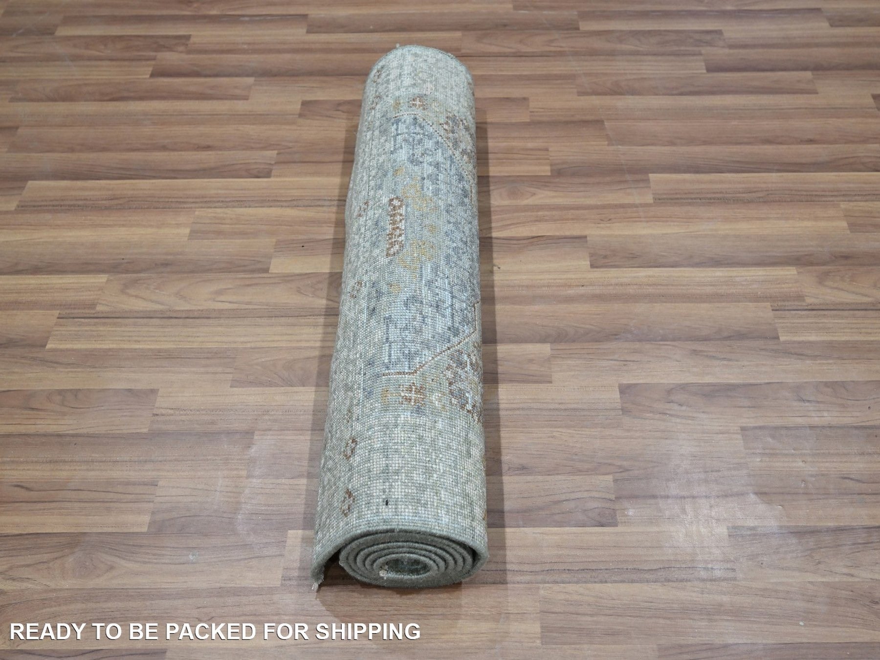 2'7" x 6'3" New Hand Knotted Green Wool Runner Oriental Rug - MOA10276809
