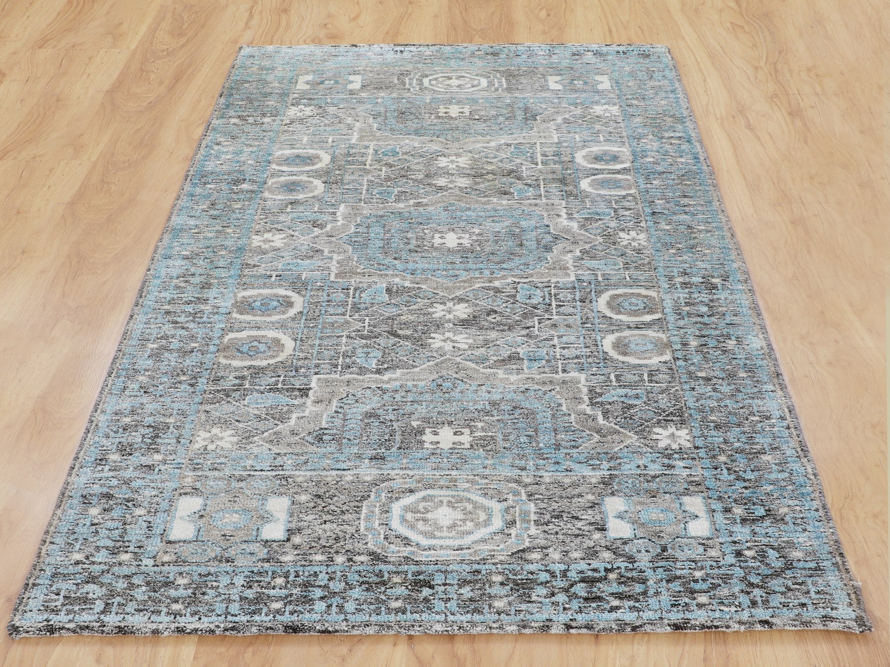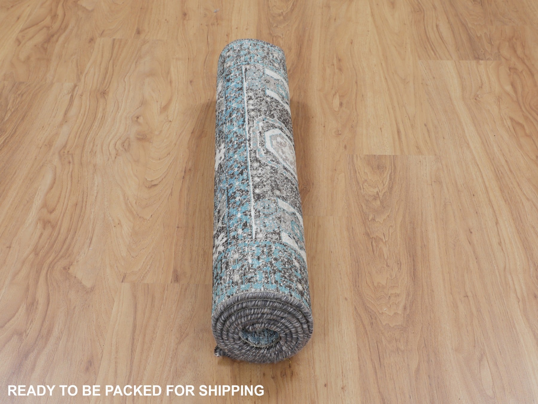 2'8" x 6'1" New Hand Knotted Blue Wool & Silk Runner Oriental Rug - MOA10258181