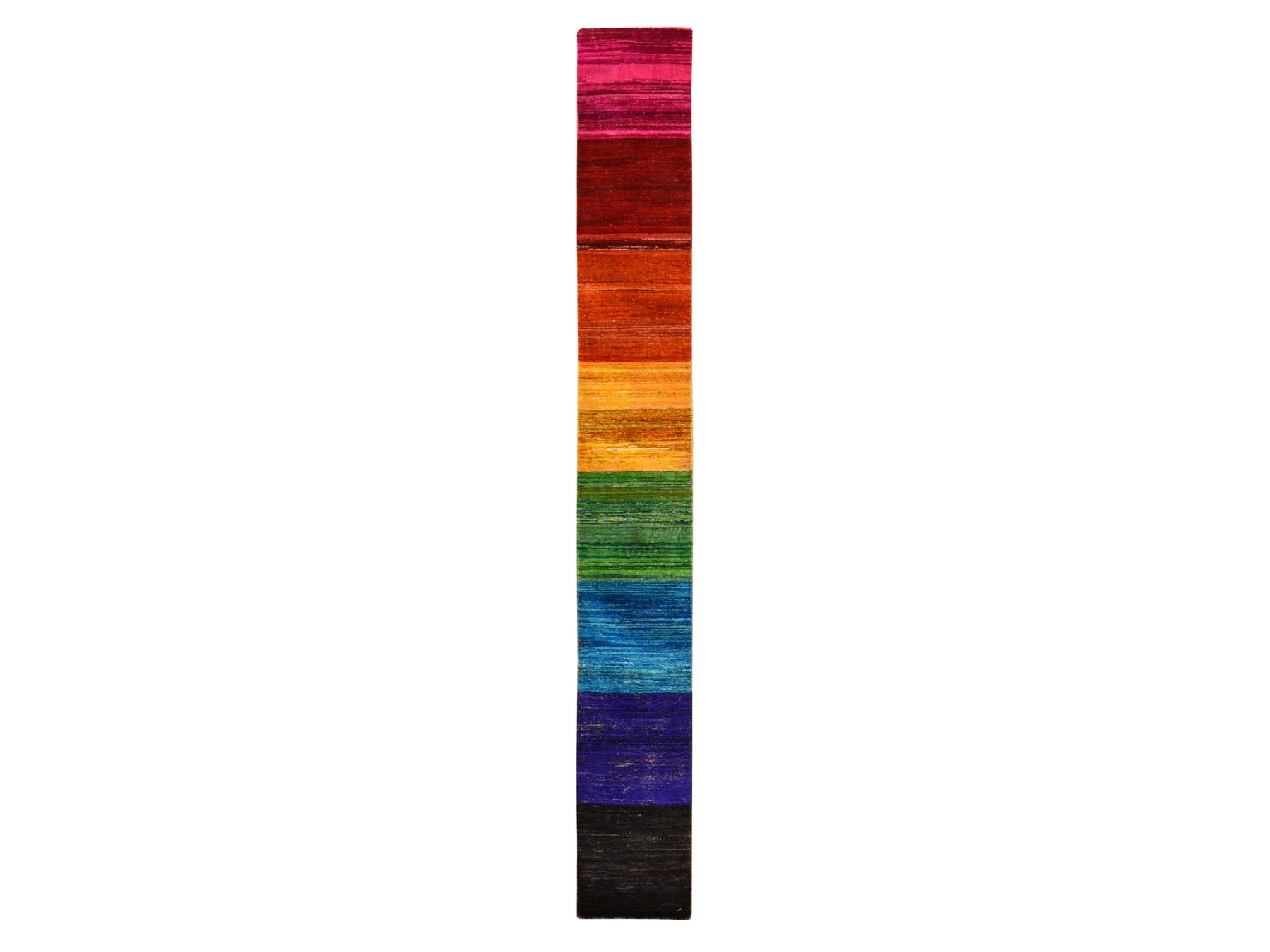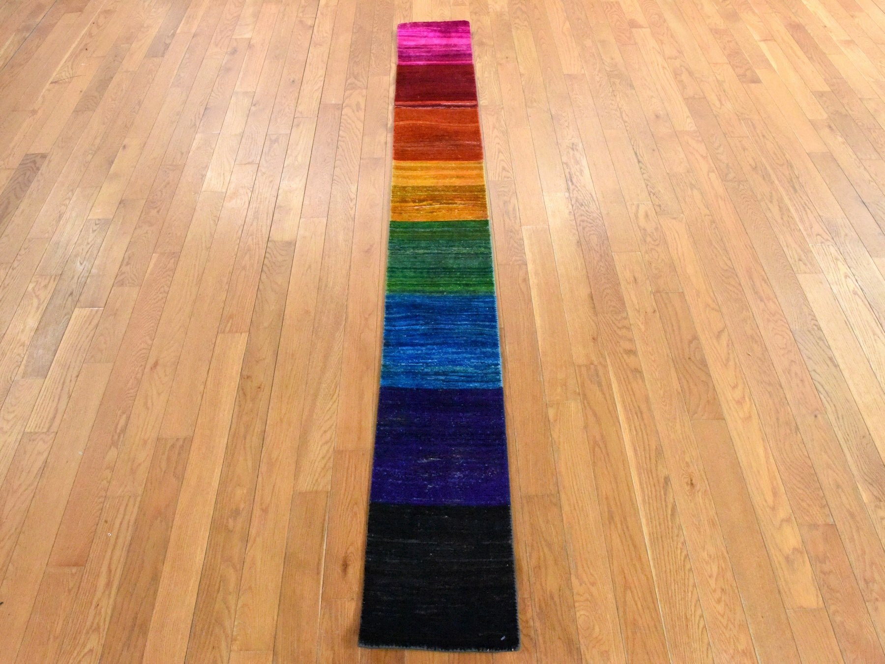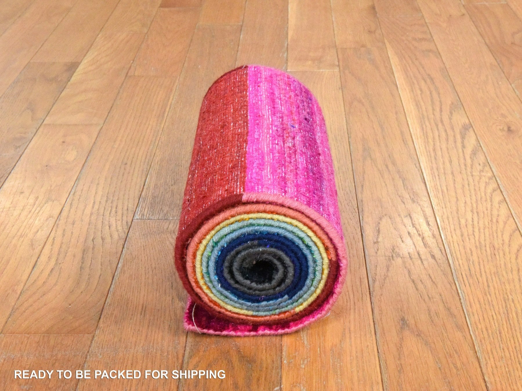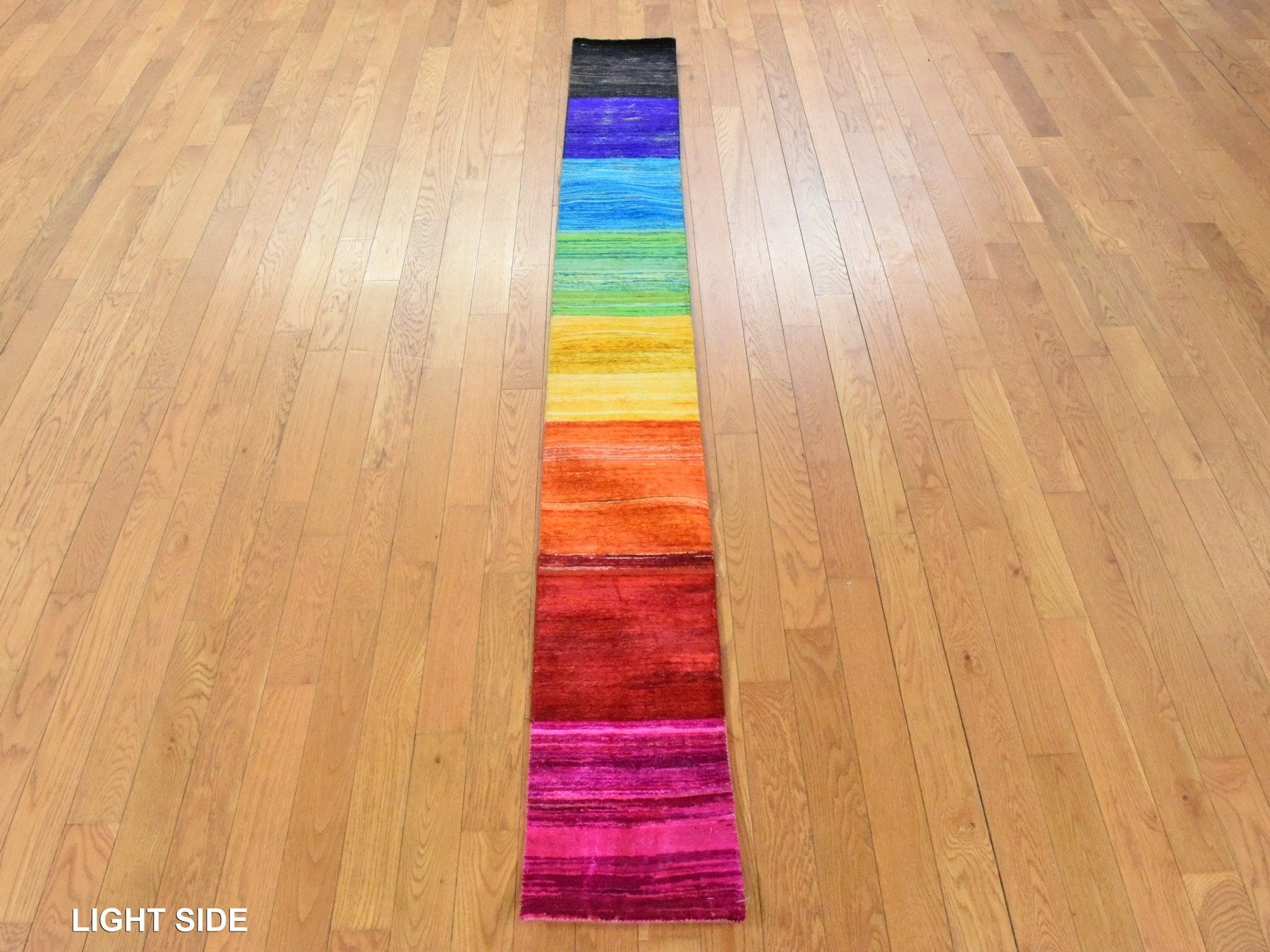 1'0" x 9'0" New Hand Knotted Multicolored Sari Silk Runner Oriental Rug - MOA10278463