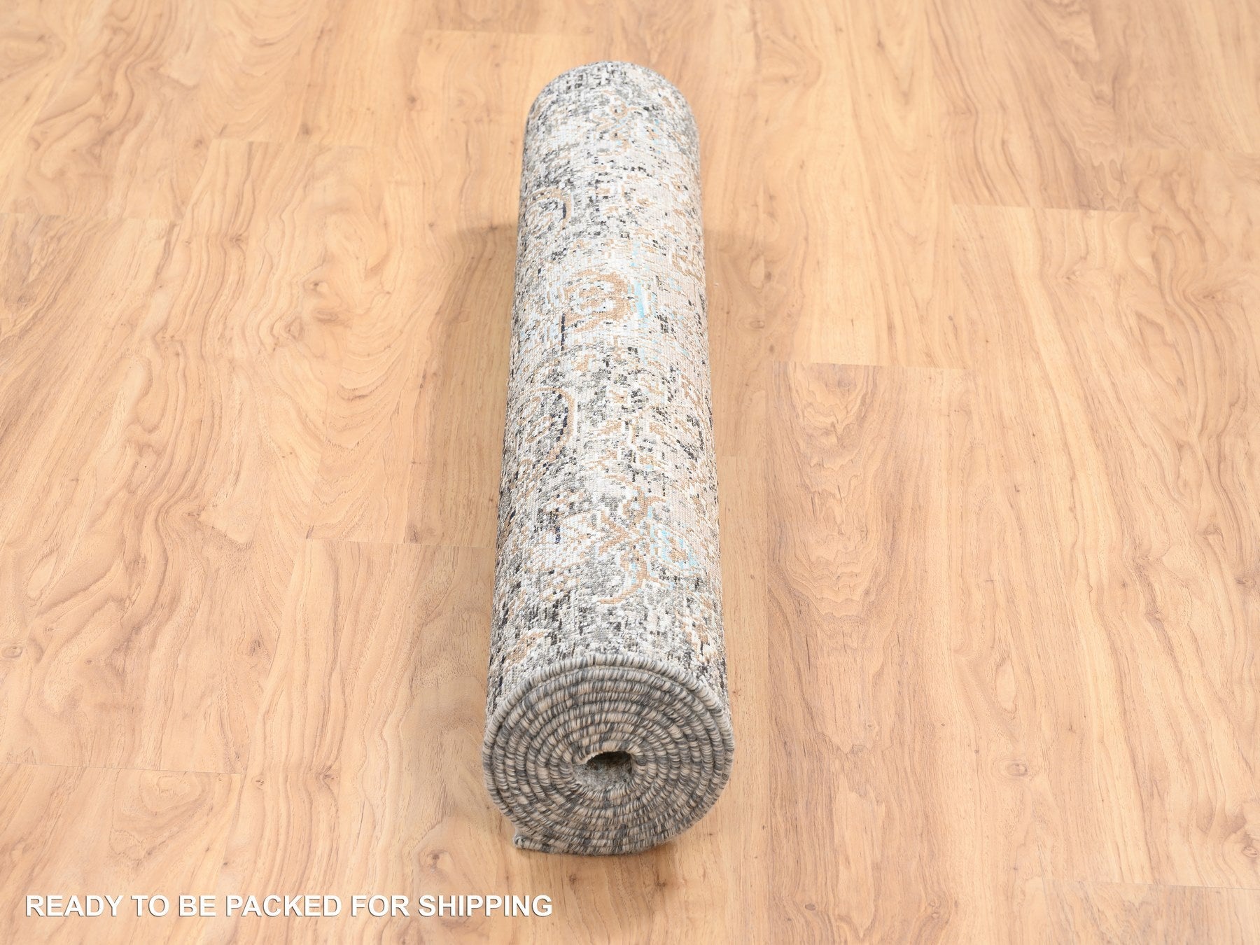 4'0" x 10'0" New Hand Knotted Brown Wool & Silk Runner Oriental Rug - MOA10264451