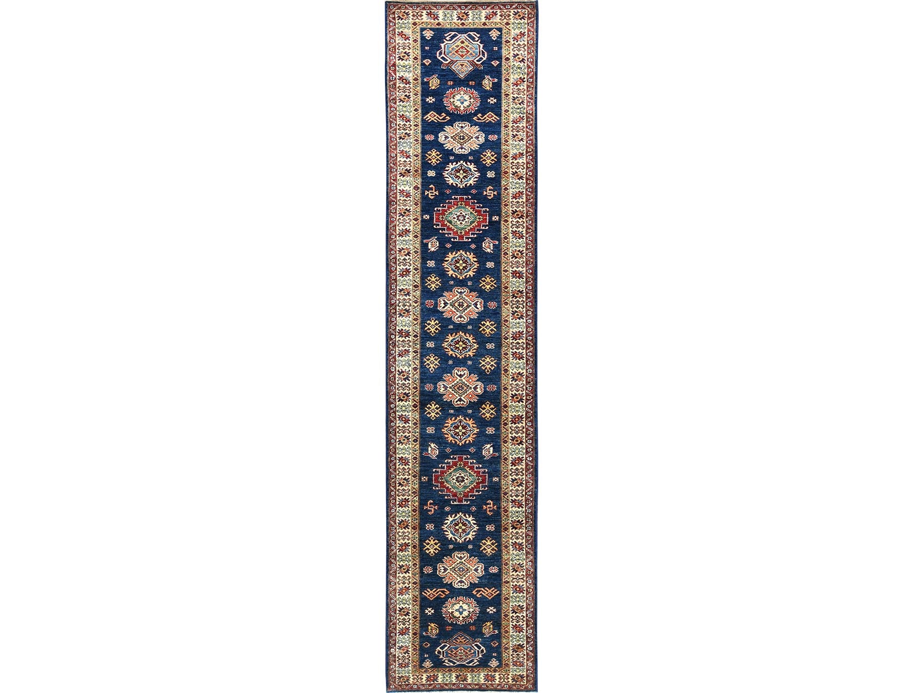 2'10" x 13'2" New Hand Knotted Blue Wool Runner Oriental Rug - MOA10282723