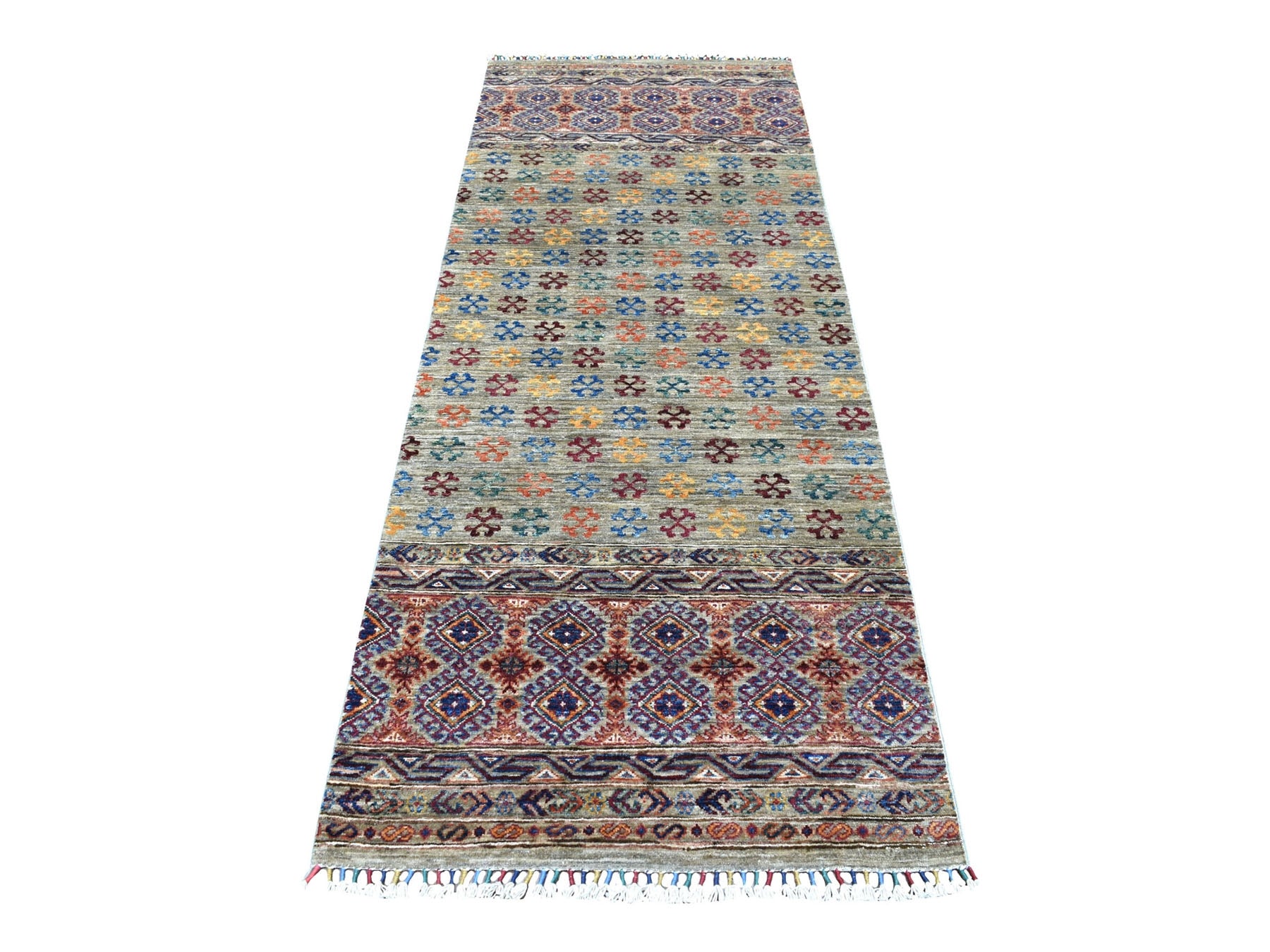 2'10" x 7'7" New Hand Knotted Grey Wool Runner Oriental Rug - MOA10256828