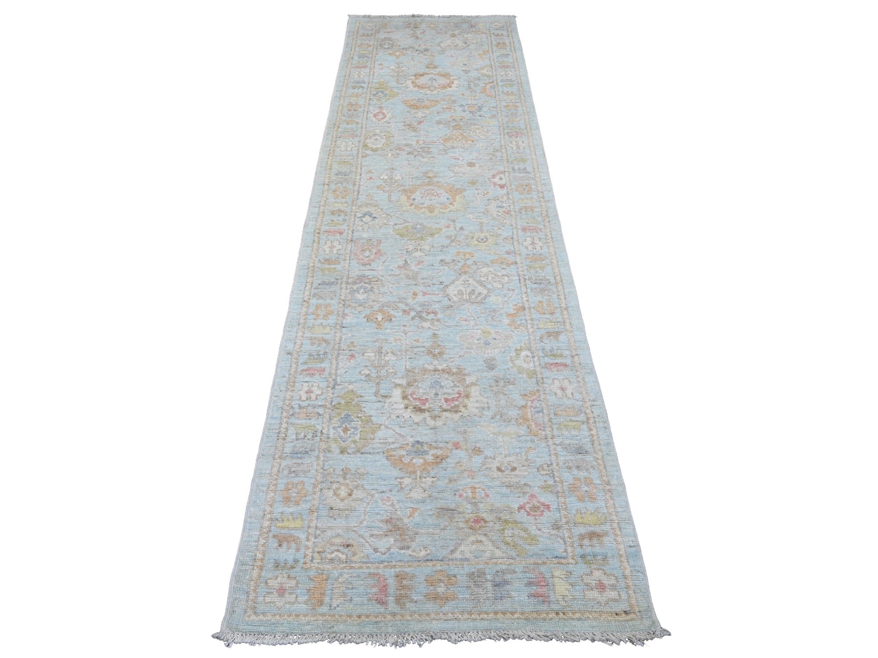 2'10" x 9'10" New Hand Knotted Blue Wool Runner Oriental Rug - MOA10220810