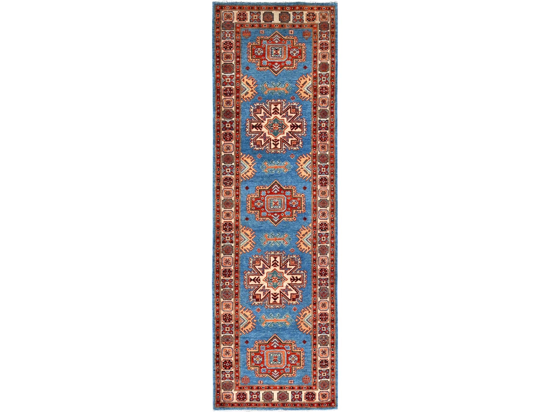 2'10" x 9'7" New Hand Knotted Blue Wool Runner Oriental Rug - MOA10286452