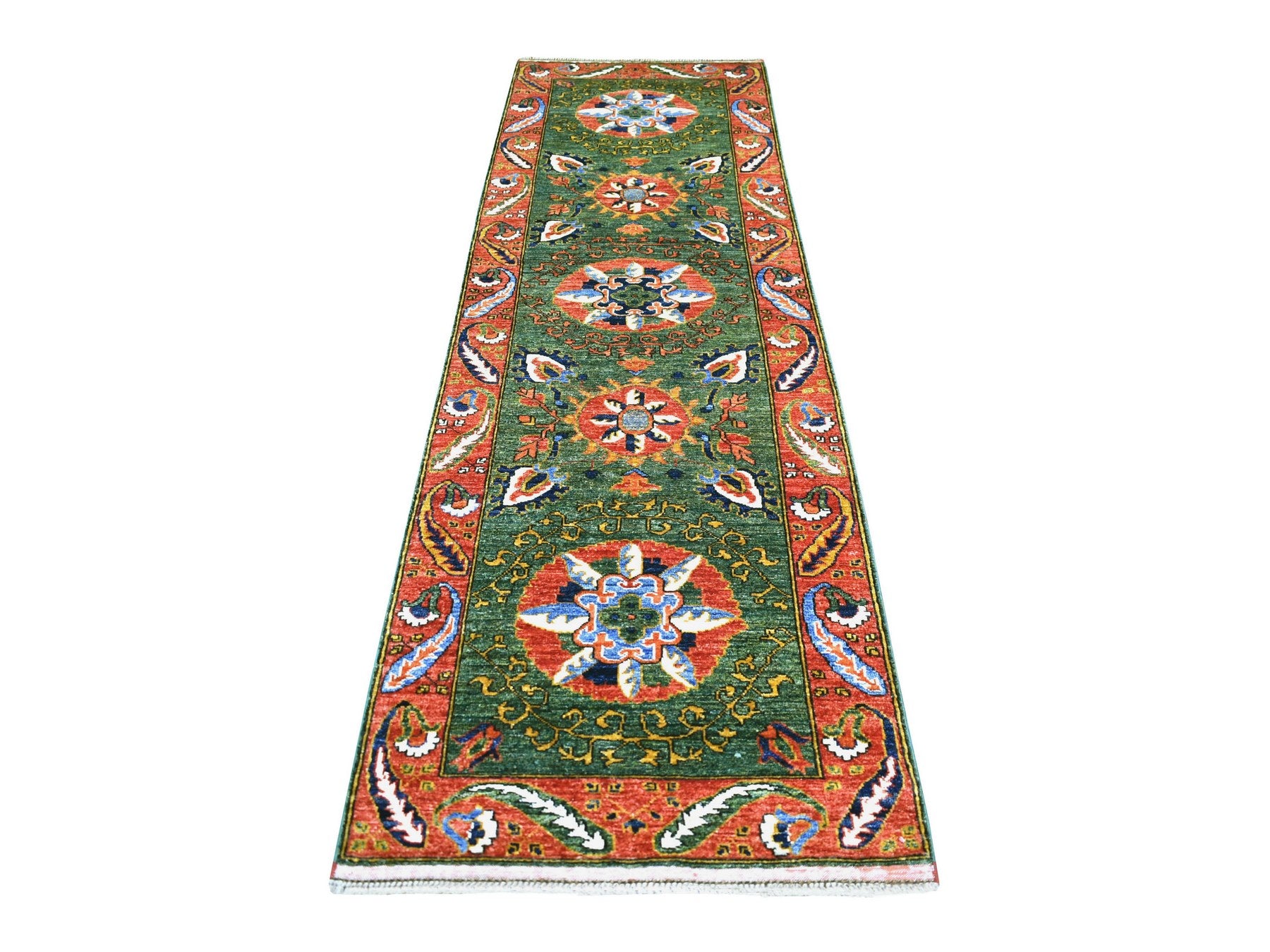 2'10" x 9'9" New Hand Knotted Green Wool Runner Oriental Rug - MOA10270619