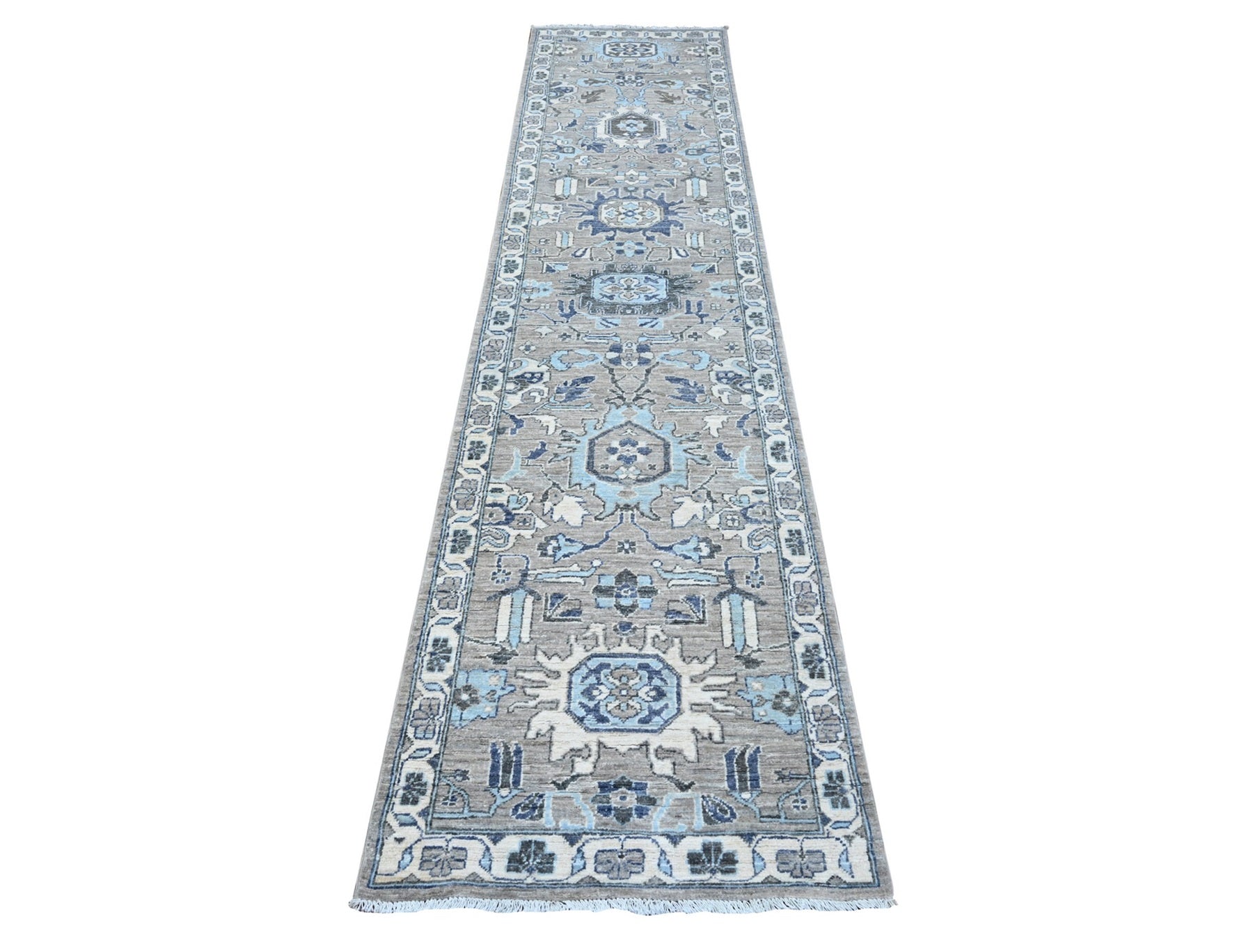 2'5" x 10'8" New Hand Knotted Grey Wool Runner Oriental Rug - MOA10288899
