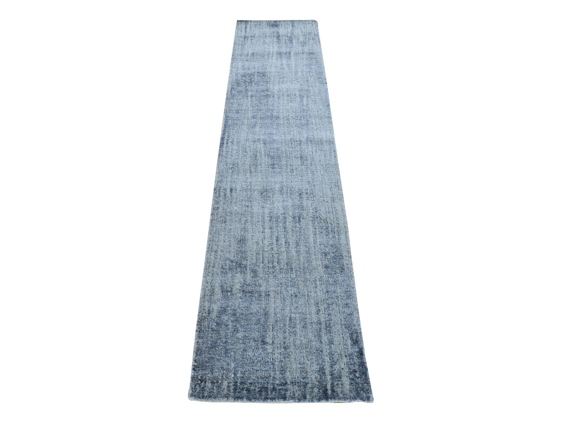 2'5" x 10'8" New Hand Loomed Blue Wool & Art Silk Runner Oriental Rug - MOA10280277