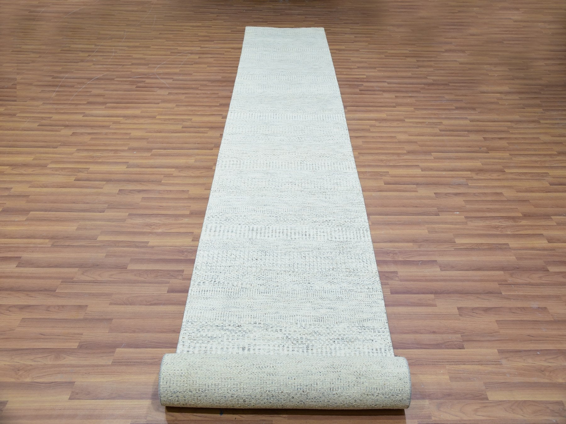 2'5" x 15'10" New Hand Knotted Grey Wool Runner Oriental Rug - MOA10279830