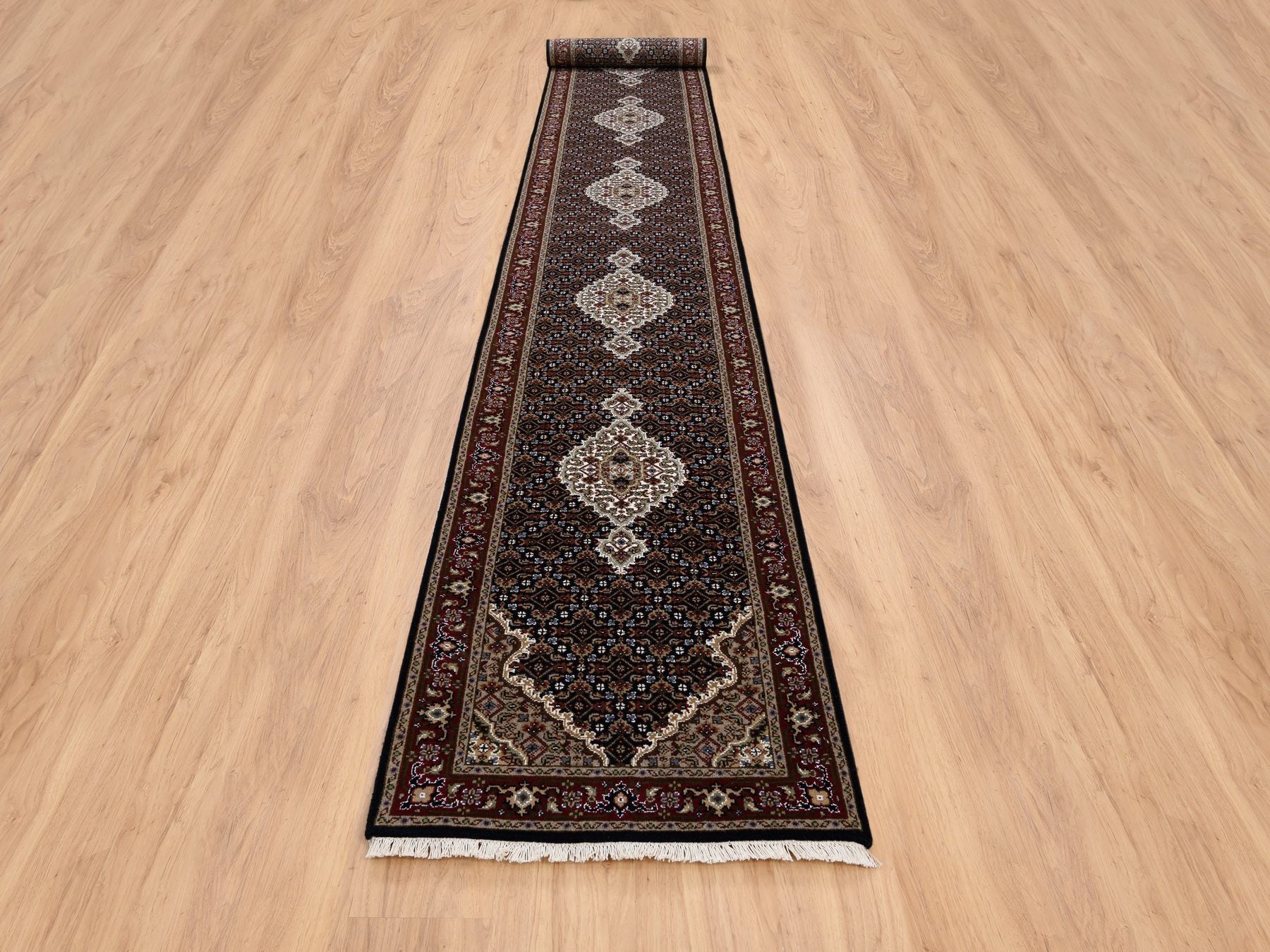 2'5" x 16'10" New Hand Knotted Black Wool Runner Oriental Rug - MOA10263839