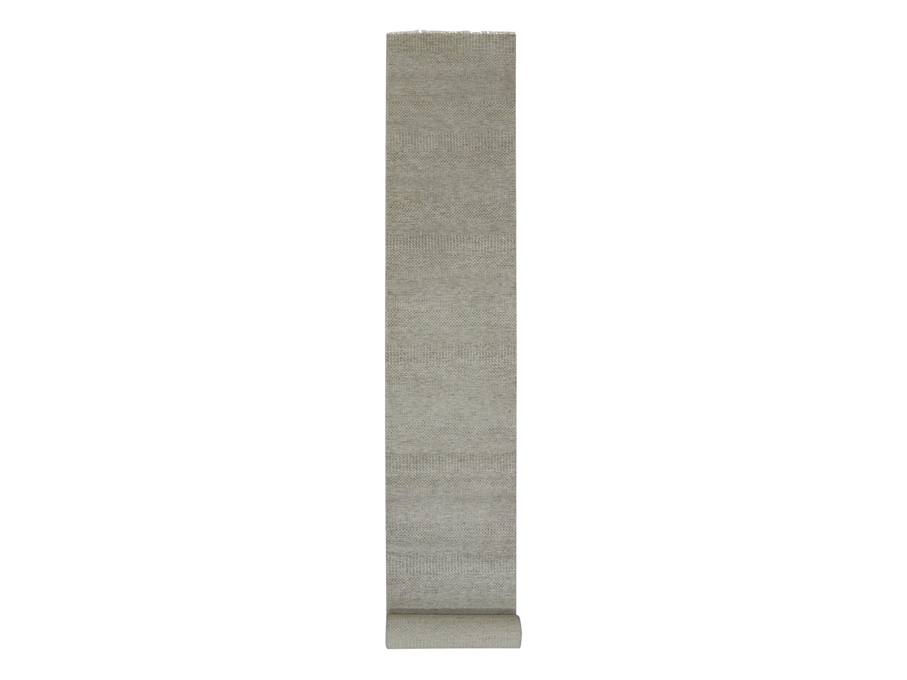 2'5" x 18'6" New Hand Knotted Grey Wool Runner Oriental Rug - MOA10279723